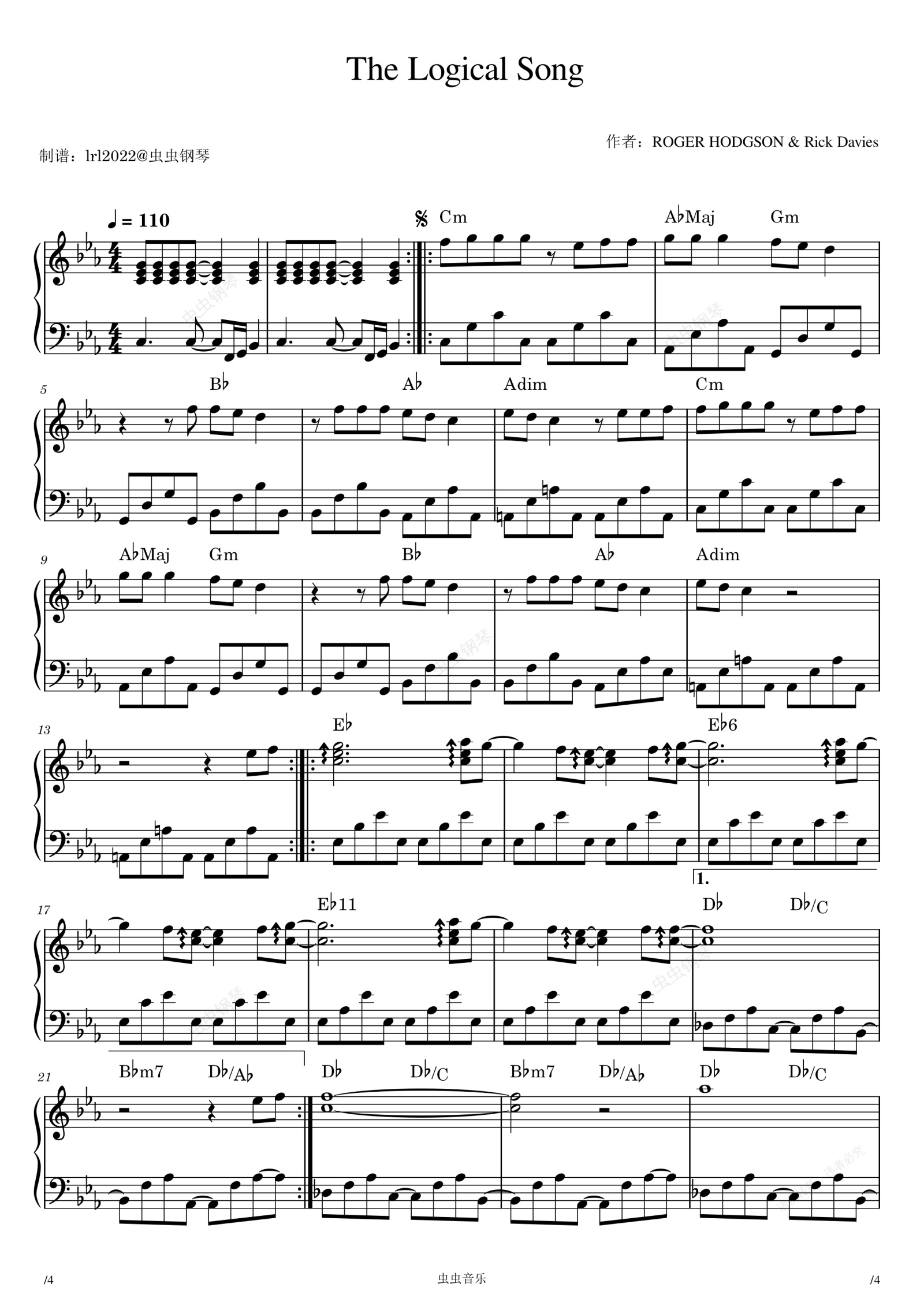 钢琴谱:The Logical Song - Supertramp - 钢琴独奏及和弦