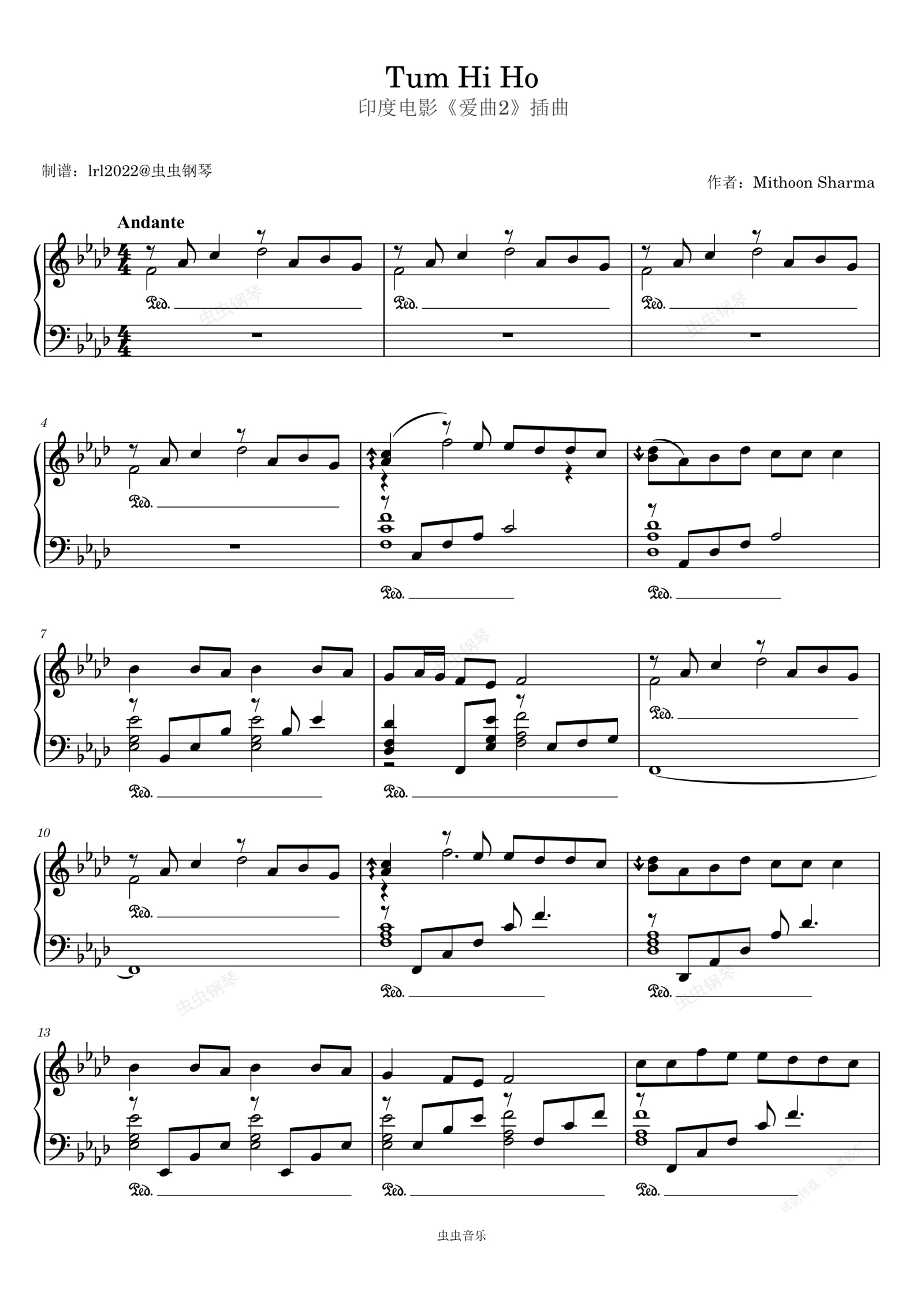 钢琴谱:Tum Hi Ho - Aashiqui 2 OST - 印度电影《爱曲2》插曲 - 钢琴独奏