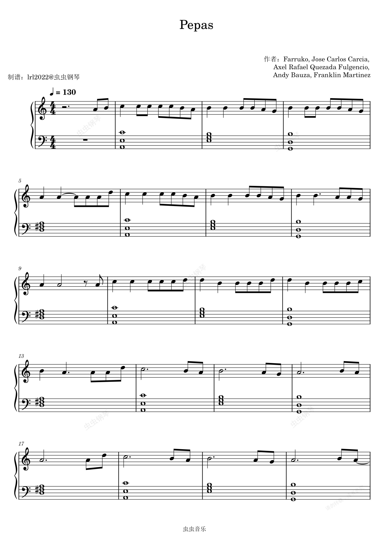 钢琴谱:Pepas – Farruko - 钢琴独奏