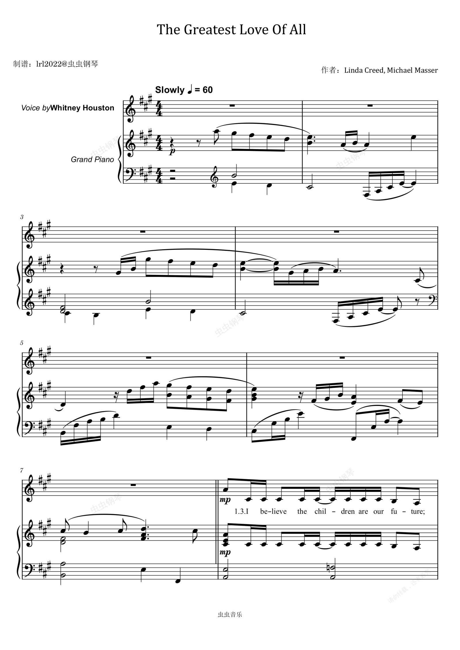 钢琴谱:The Greatest Love Of All - Whitney Houston - 钢琴伴奏弹唱人声 - 含歌词