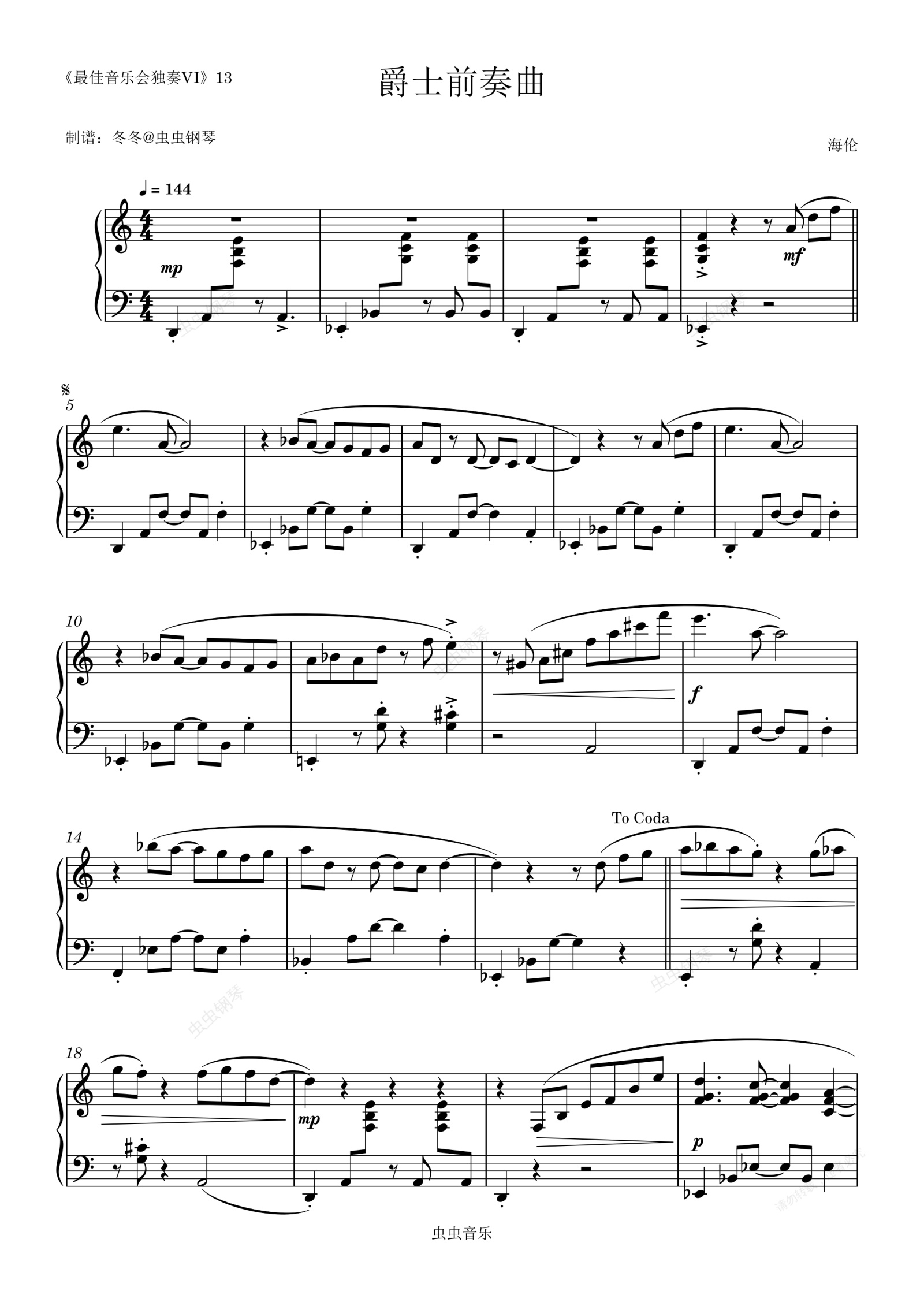 您的位置: 首页 > 钢琴谱库 > 爵士前奏曲钢琴谱-海伦
