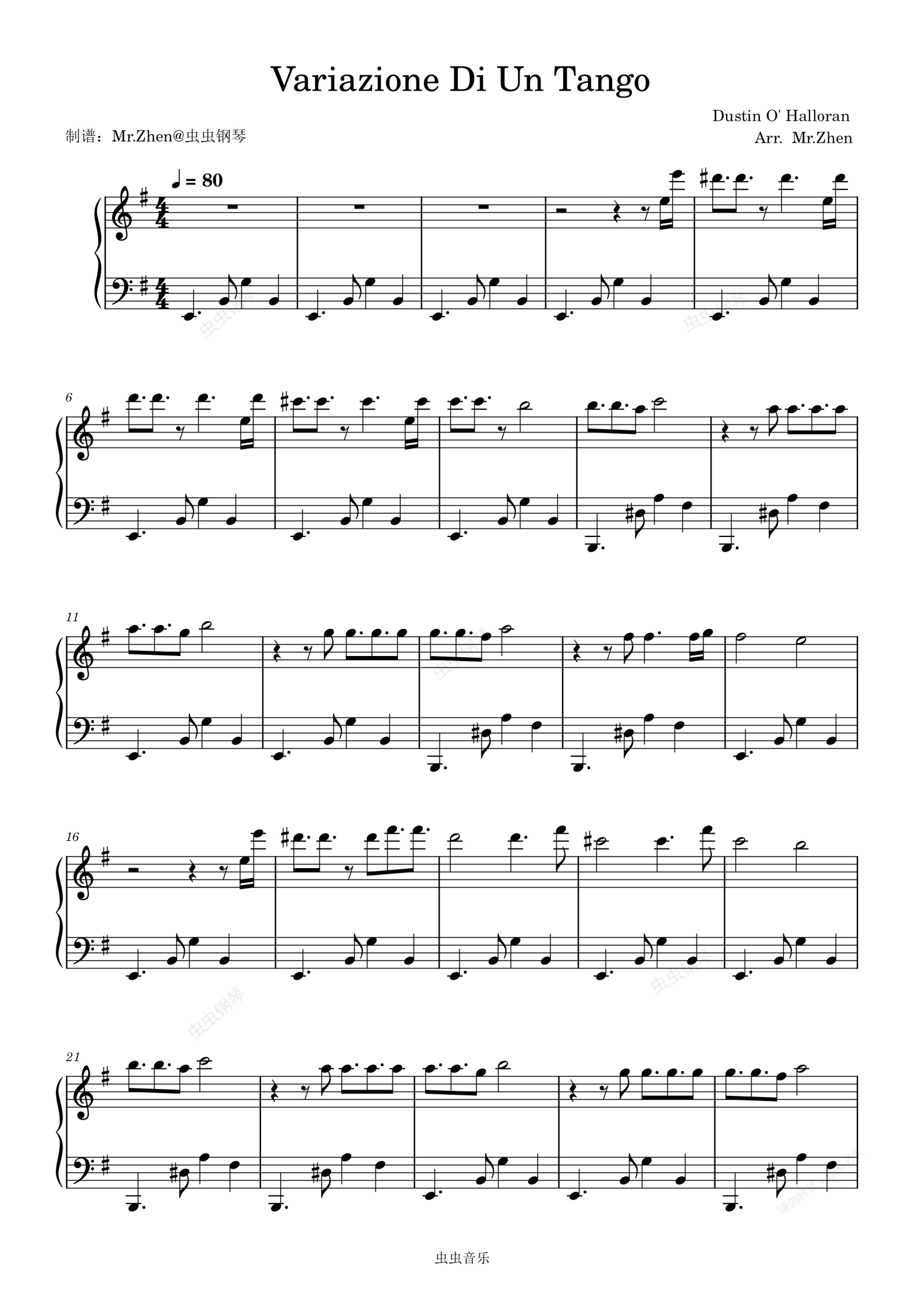 钢琴谱:Variazione Di Un Tango - Dustin O'Halloran
