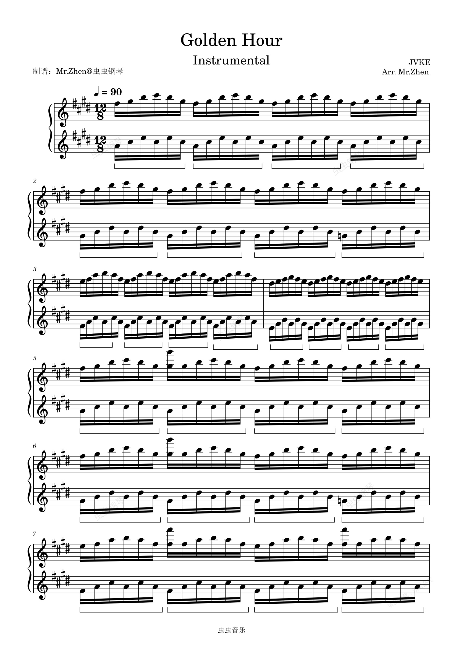 钢琴谱:Golden Hour - JVKE (伴奏完美版)