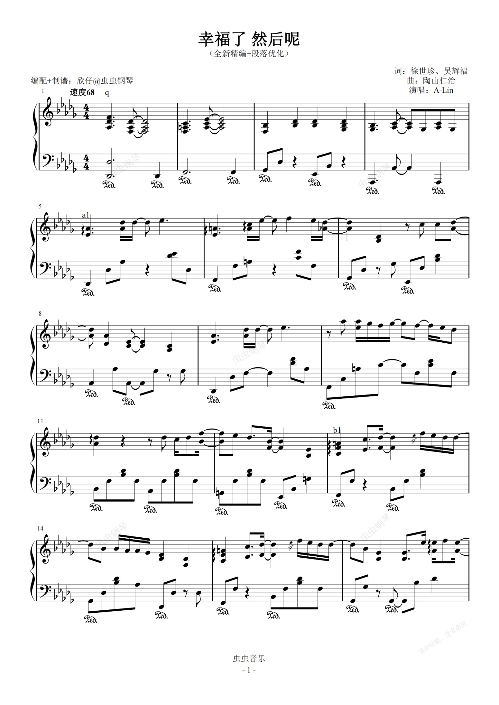 钢琴谱:A-Lin-降D《幸福了 然后呢》(全新精编+段落优化)