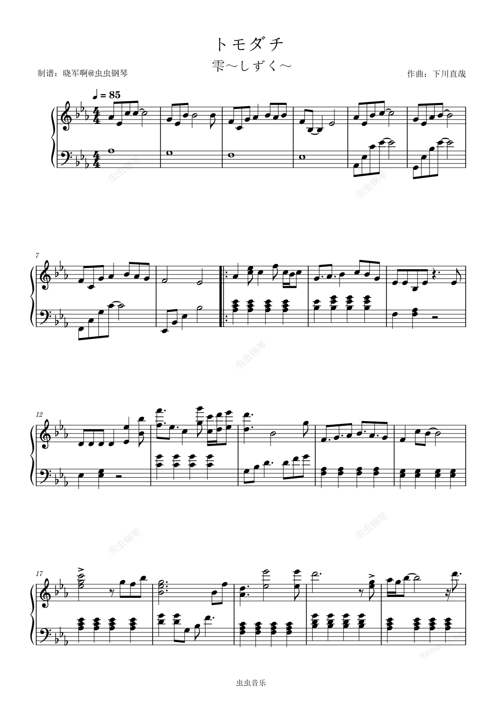 钢琴谱:【雫】トモダチ
