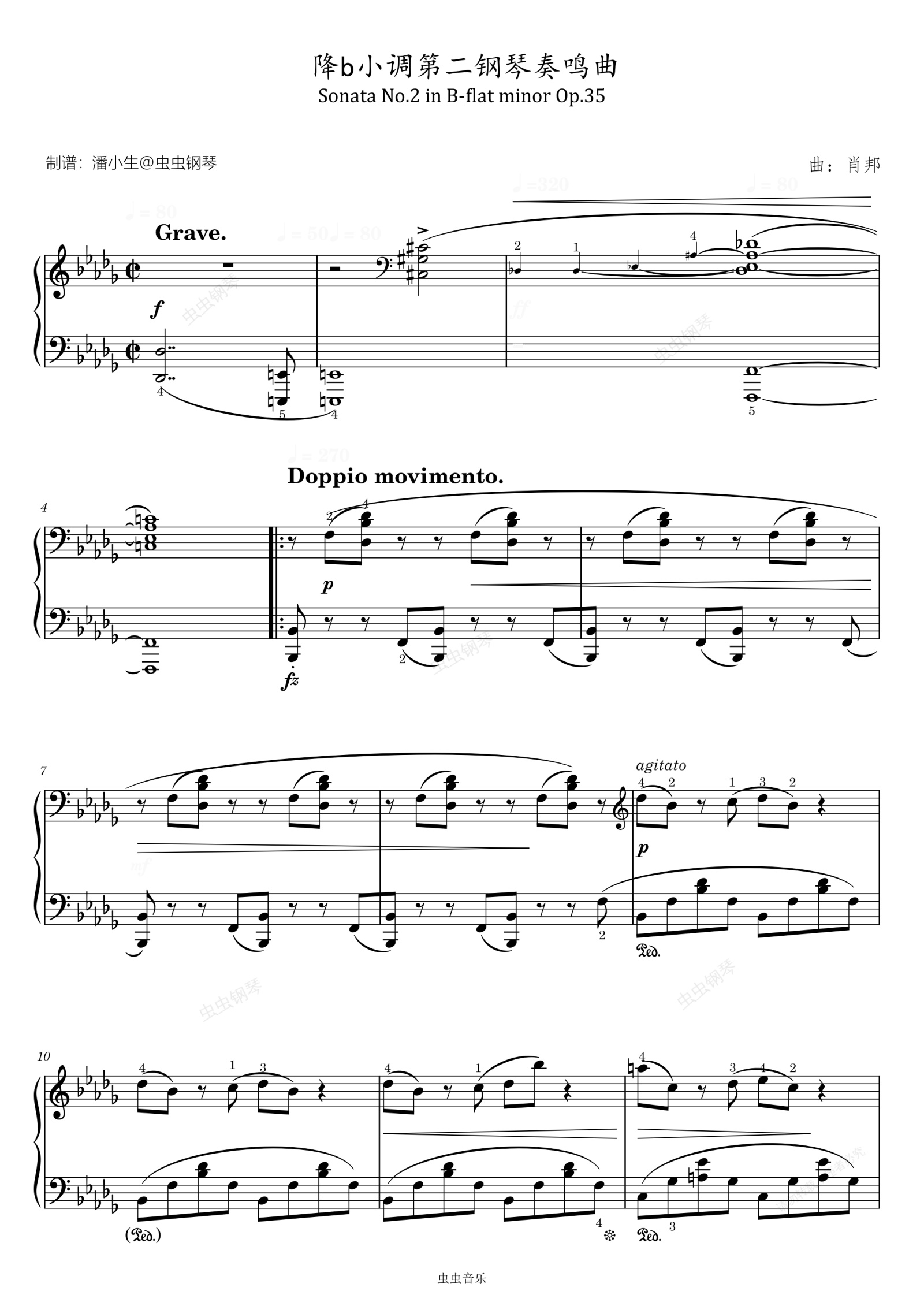 钢琴谱:肖邦 降b小调第二钢琴奏鸣曲 Op.35 原版带指法 完整版(四乐章全) 钢琴独奏
