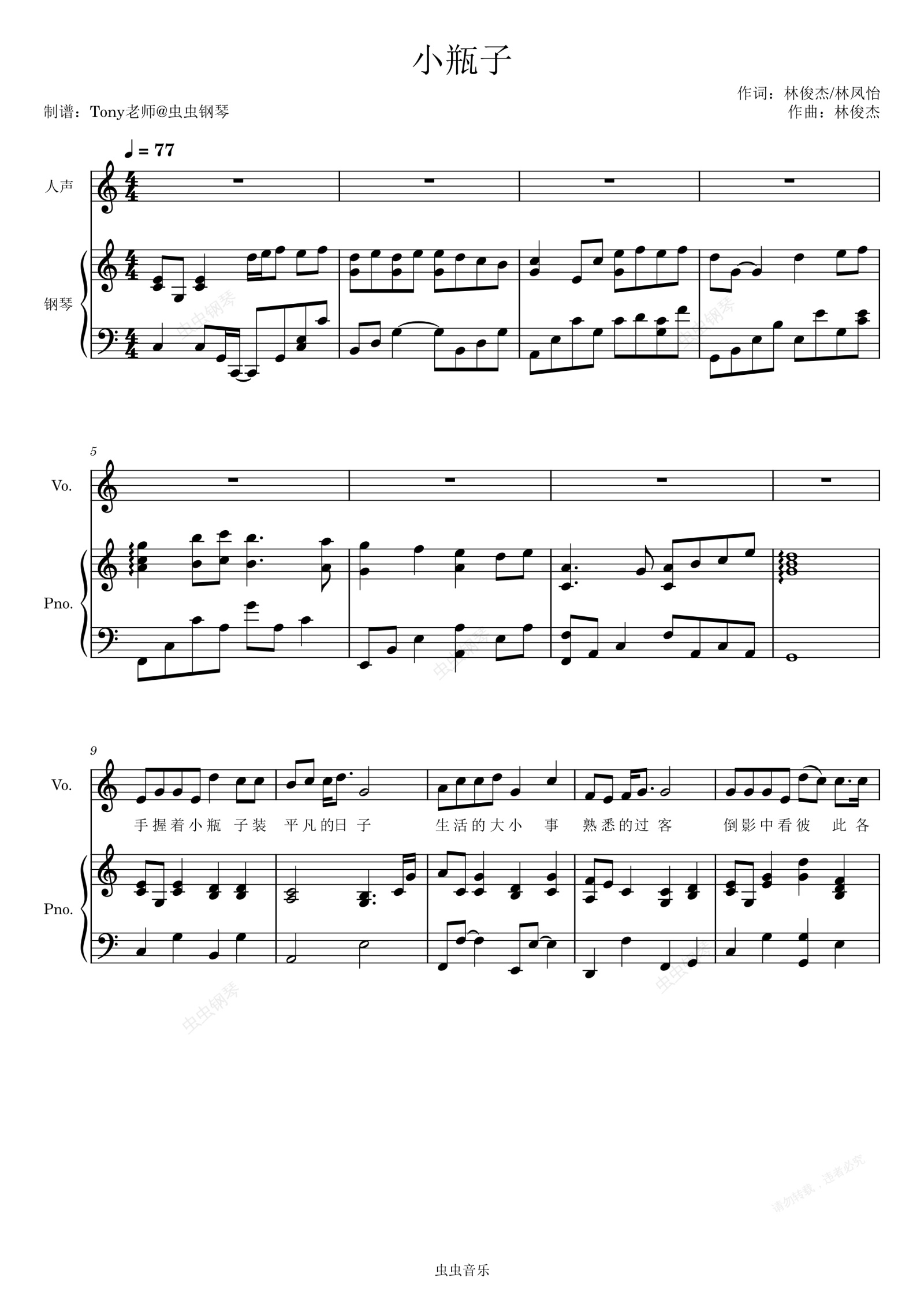 钢琴谱:小瓶子【完美伴奏附词】林俊杰 Tony老师