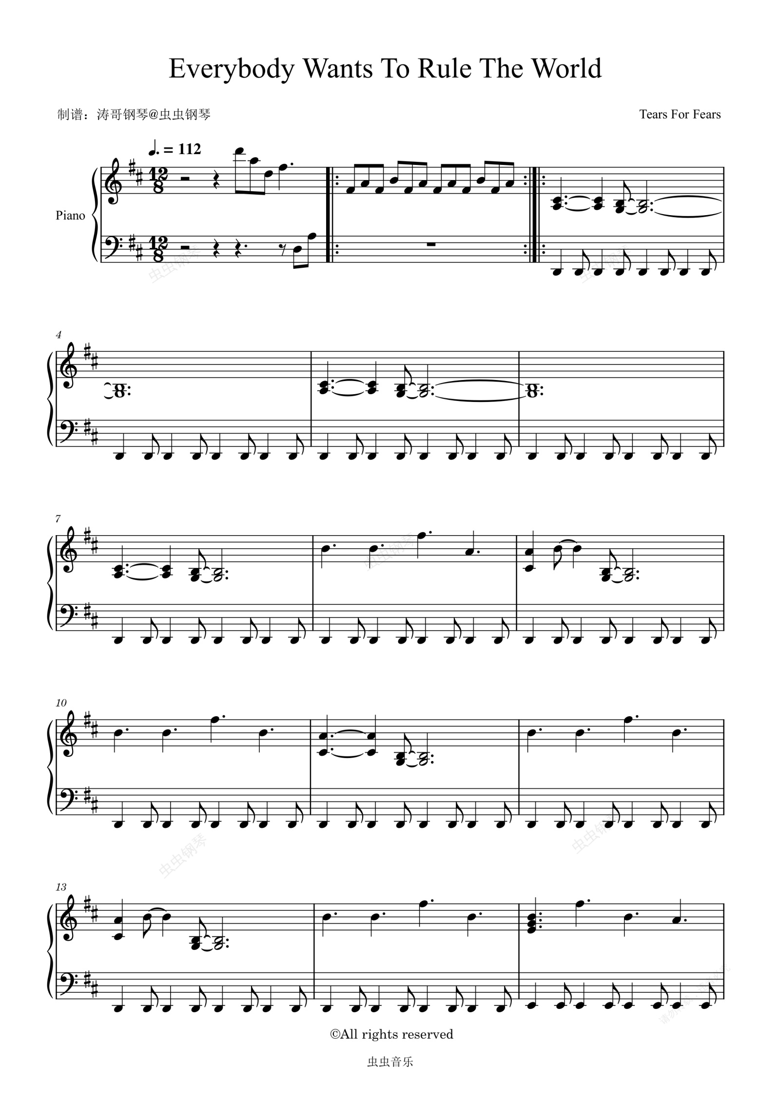 钢琴谱:Everybody Wants To Rule The World - Tears For Fears