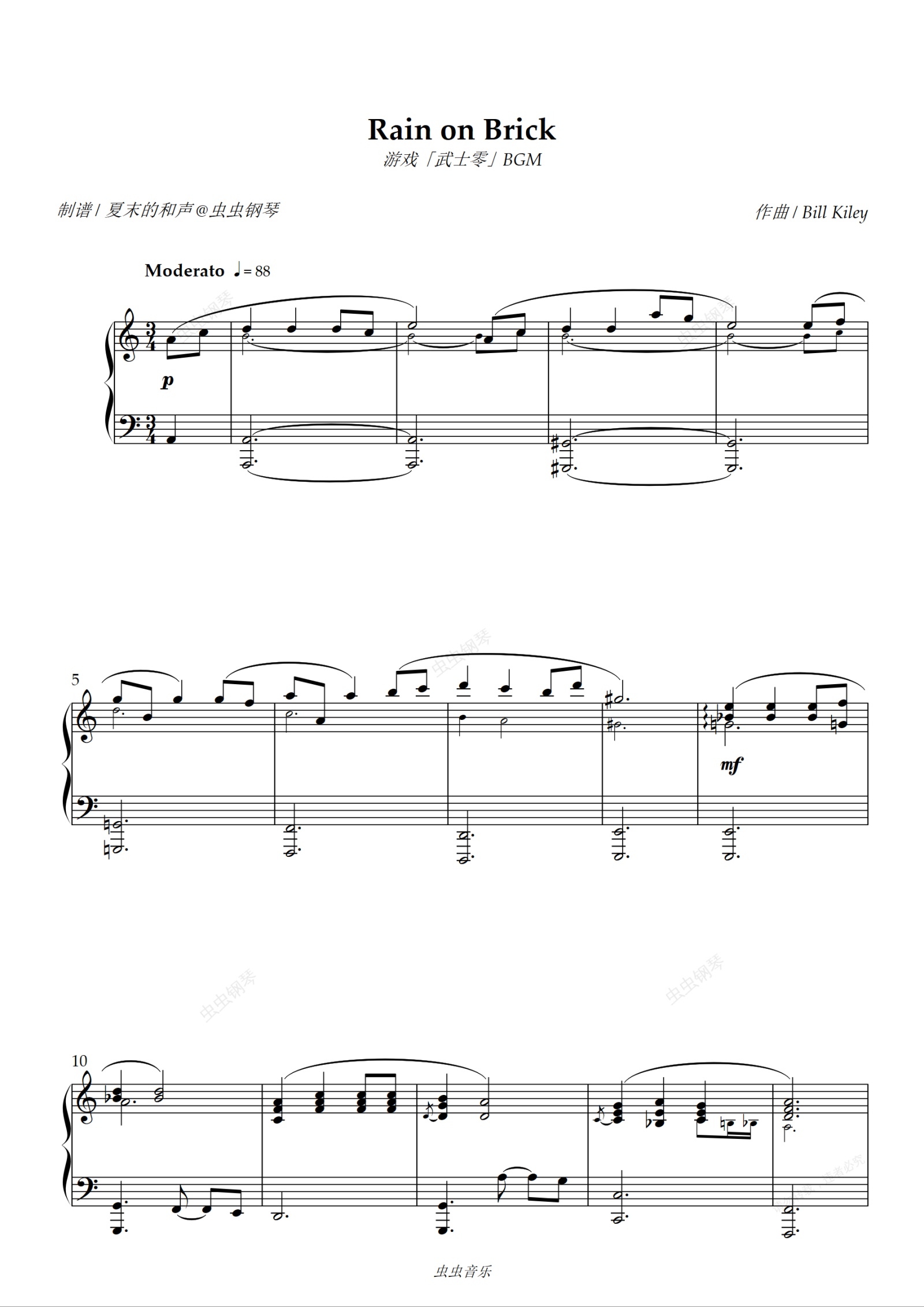 钢琴谱:武士零 - Rain on Brick - 游戏BGM - Katana Zero