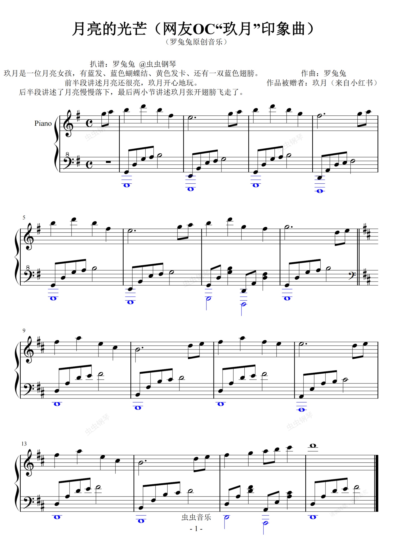 钢琴谱:月亮的光芒(网友OC“玖月”印象曲)(罗兔兔原创音乐)