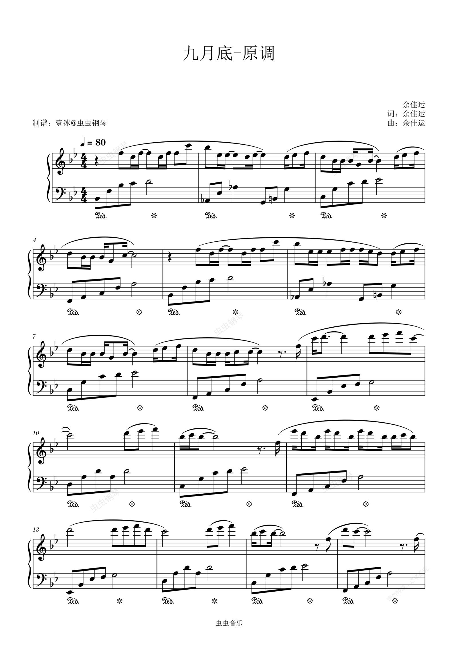 钢琴谱:九月底//余佳运 - 原调 简单易上手