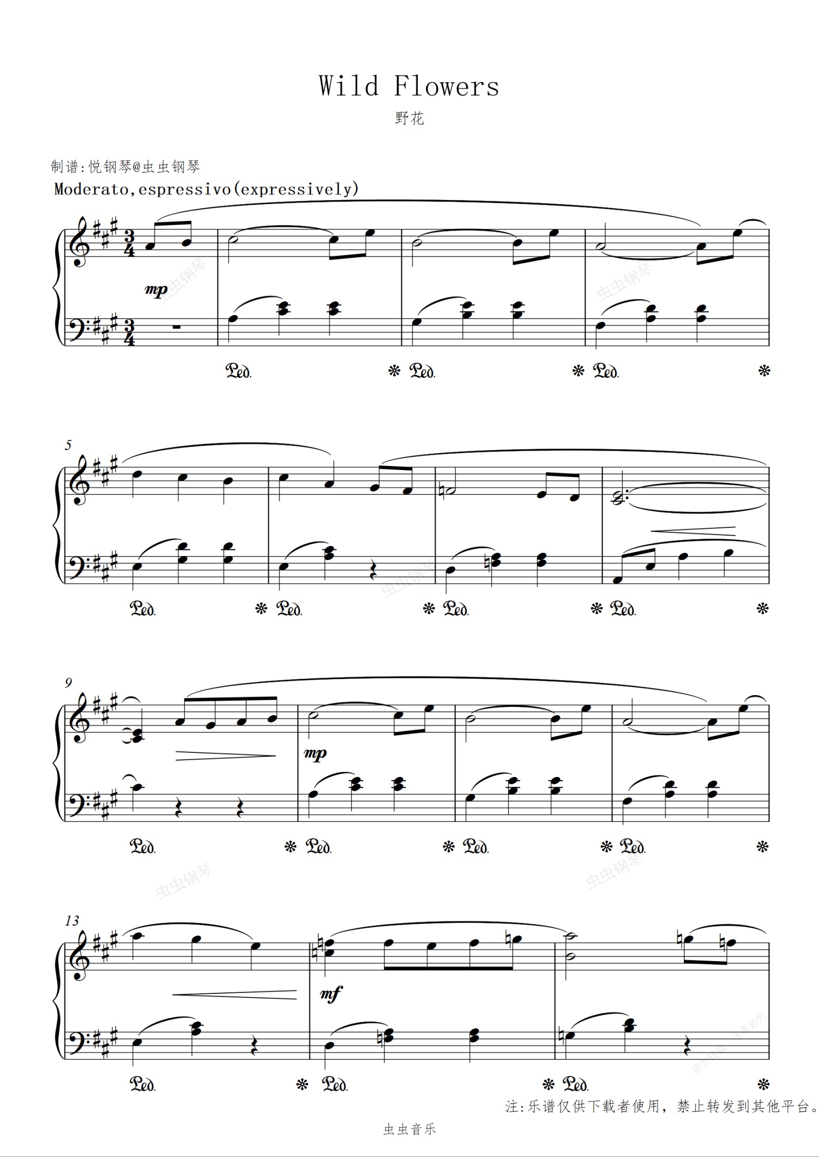 钢琴谱:野花//Wild Flowers【抒情】