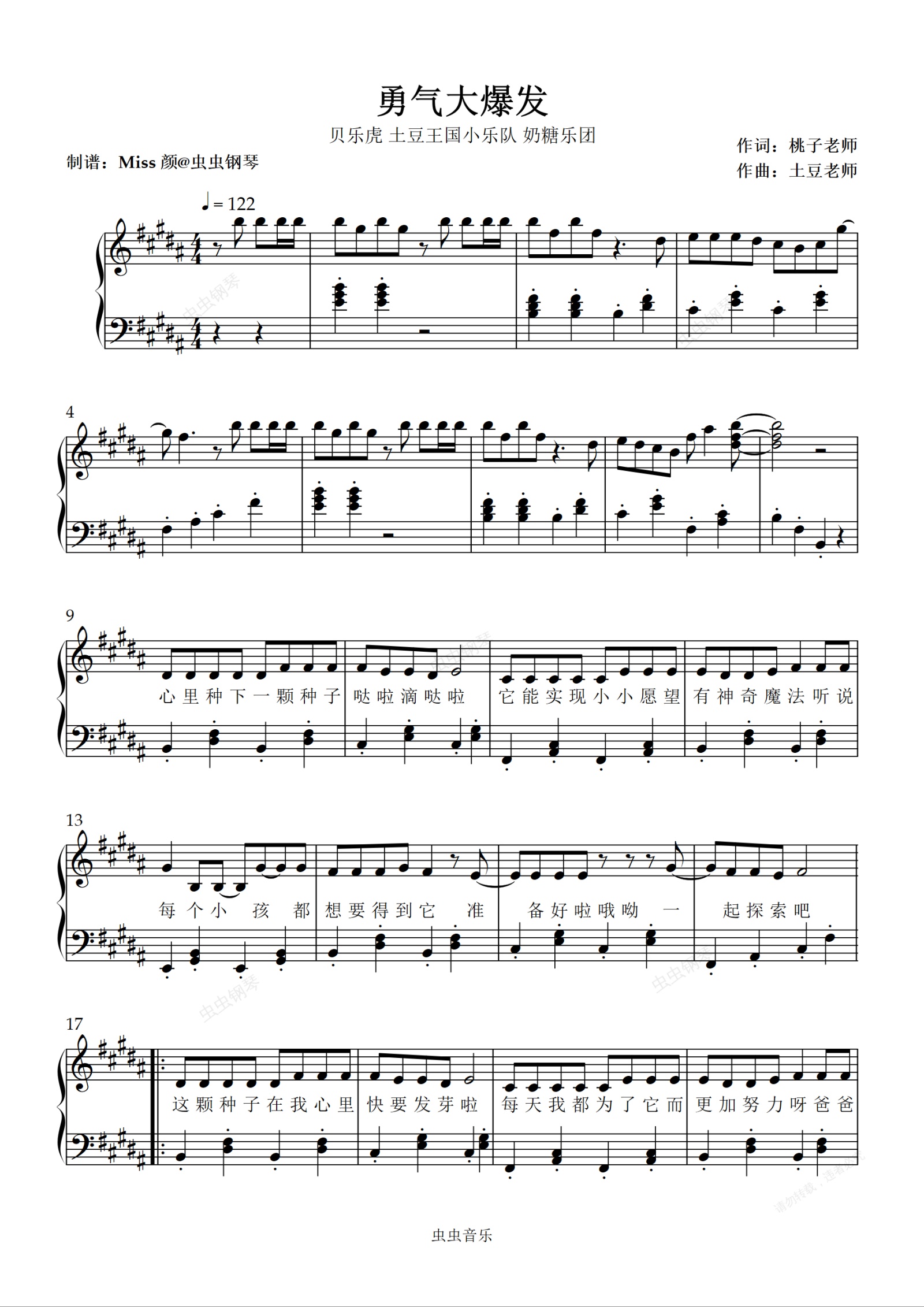 钢琴谱:勇气大爆发 B调(原版调)抖音热门歌曲 简单易上手版