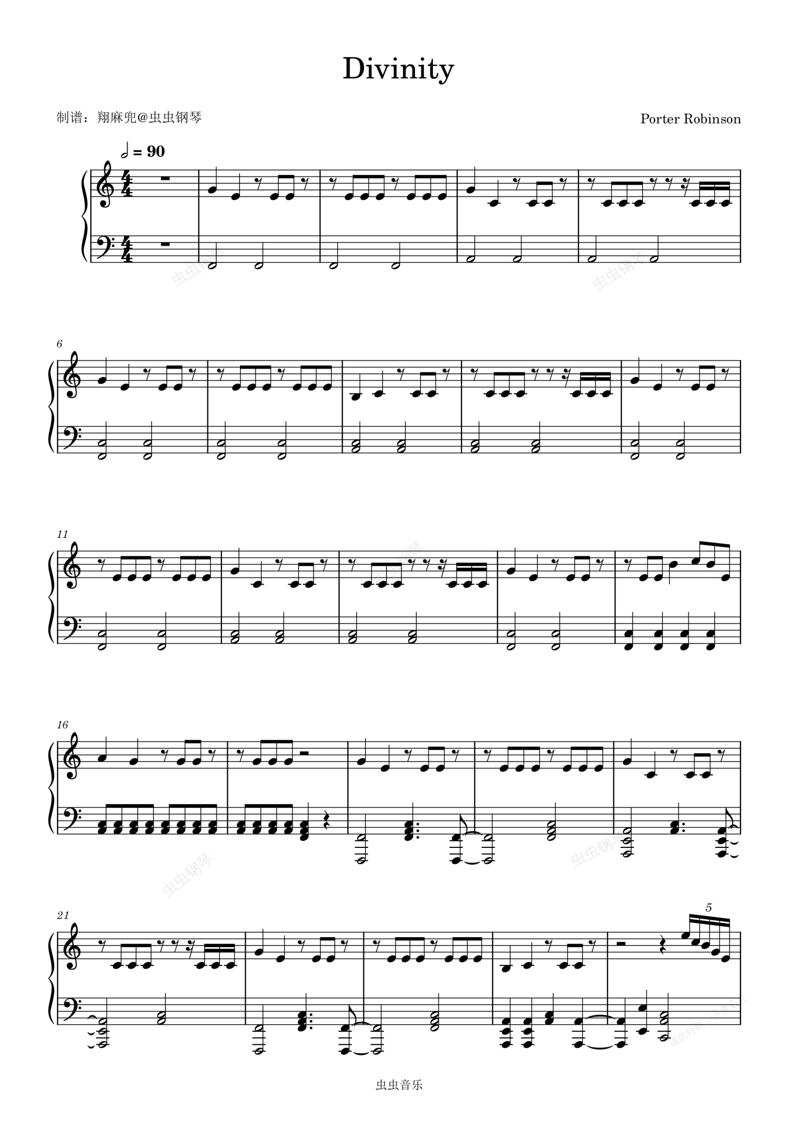 钢琴谱:Divinity - Porter Robinson/Amy Millan