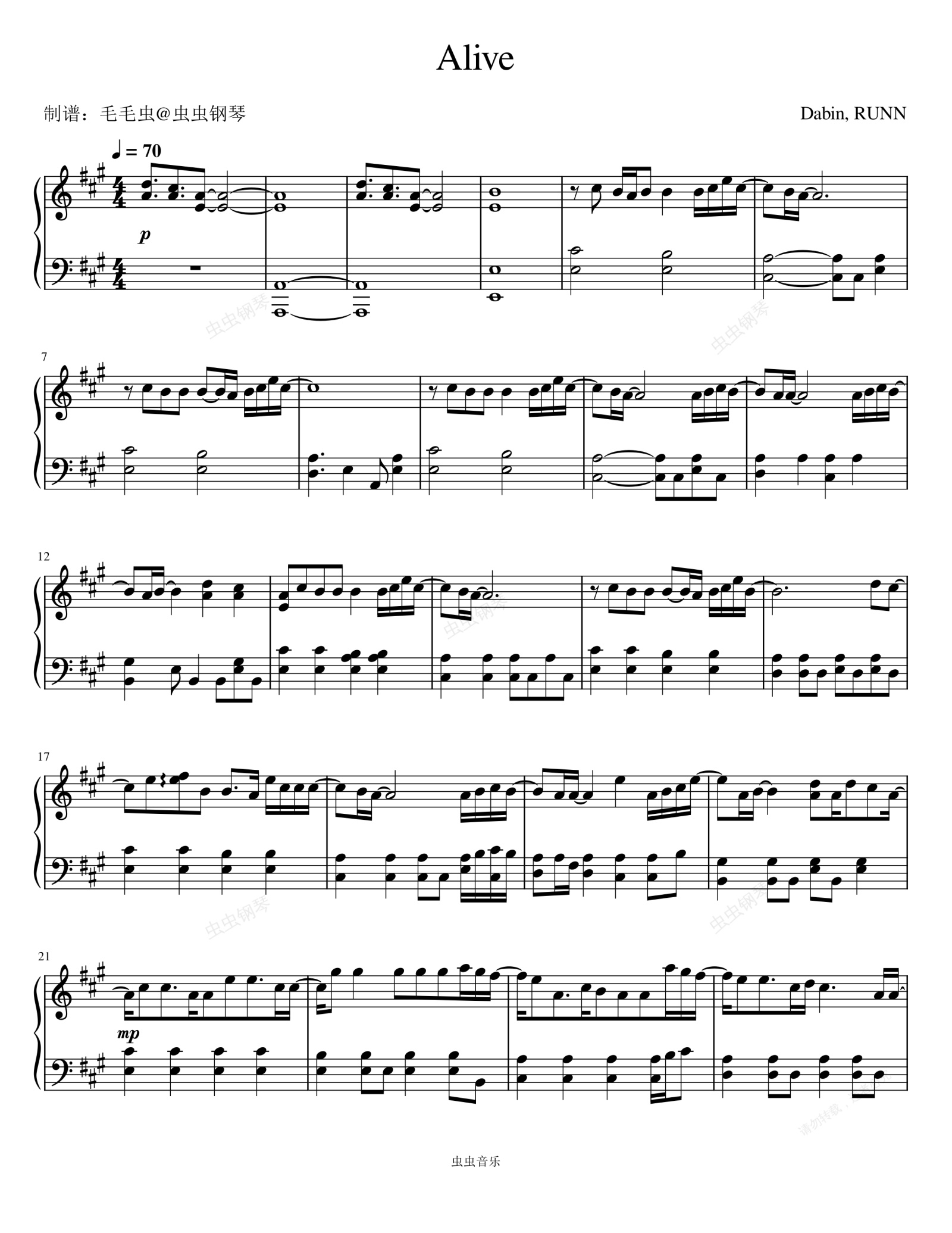 钢琴谱:Alive - Dabin/RUNN