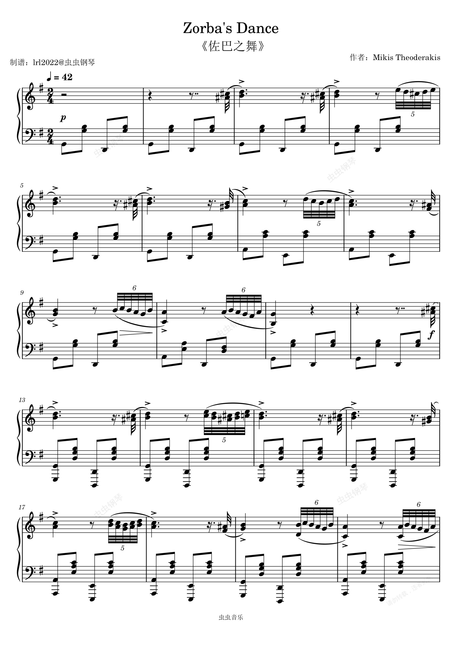 钢琴谱:佐巴之舞 Zorba's Dance - 钢琴独奏