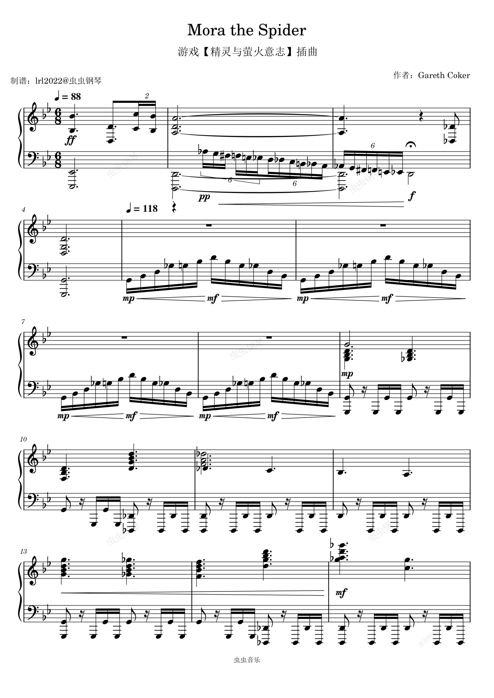 钢琴谱:Mora the Spider - Ori and the Will of the Wisps OST - 游戏【精灵与萤火意志】插曲 - 钢琴独奏