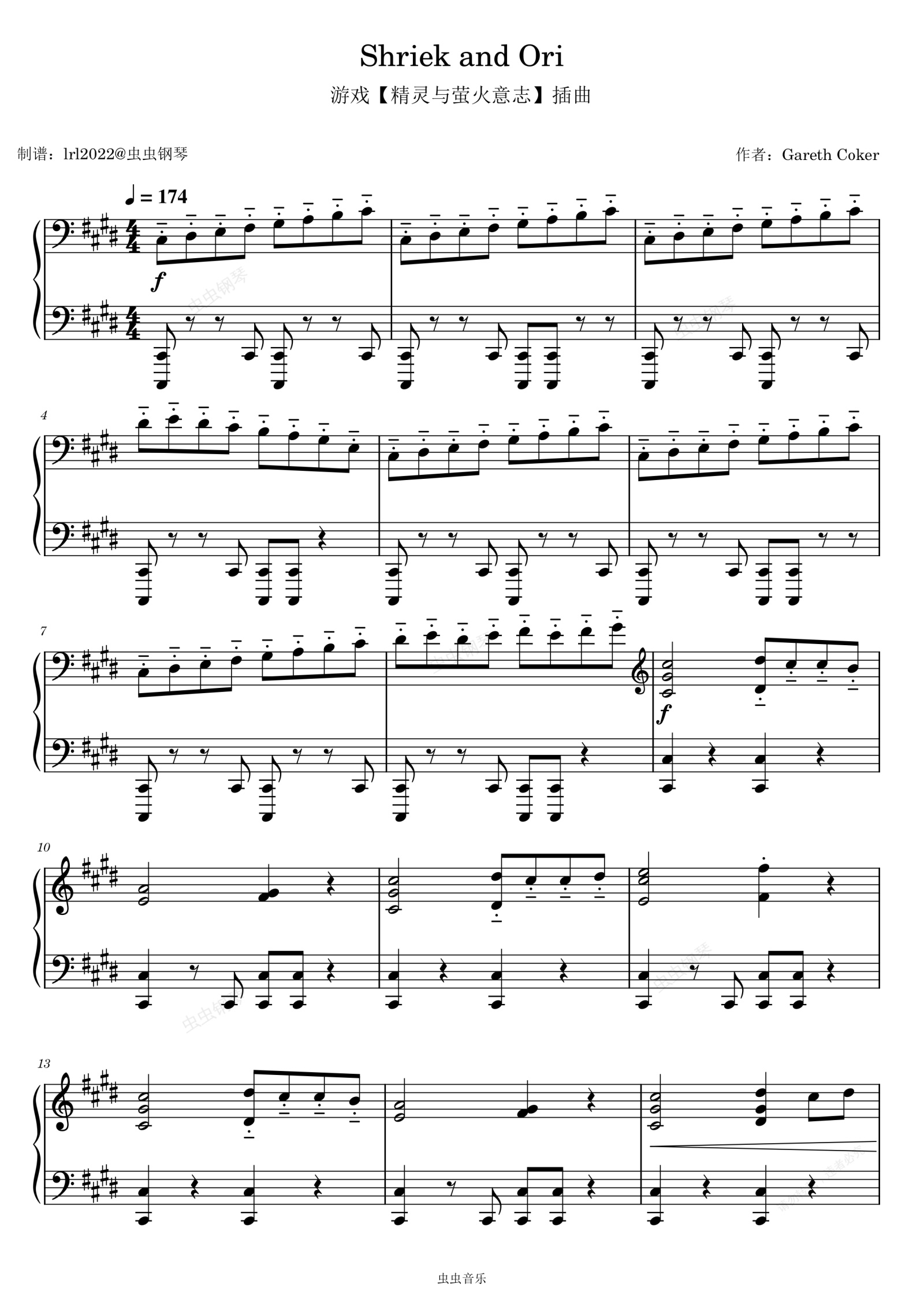 钢琴谱:Shriek and Ori - Ori and the Will of the Wisps - 游戏【精灵与萤火意志】插曲 - 钢琴独奏