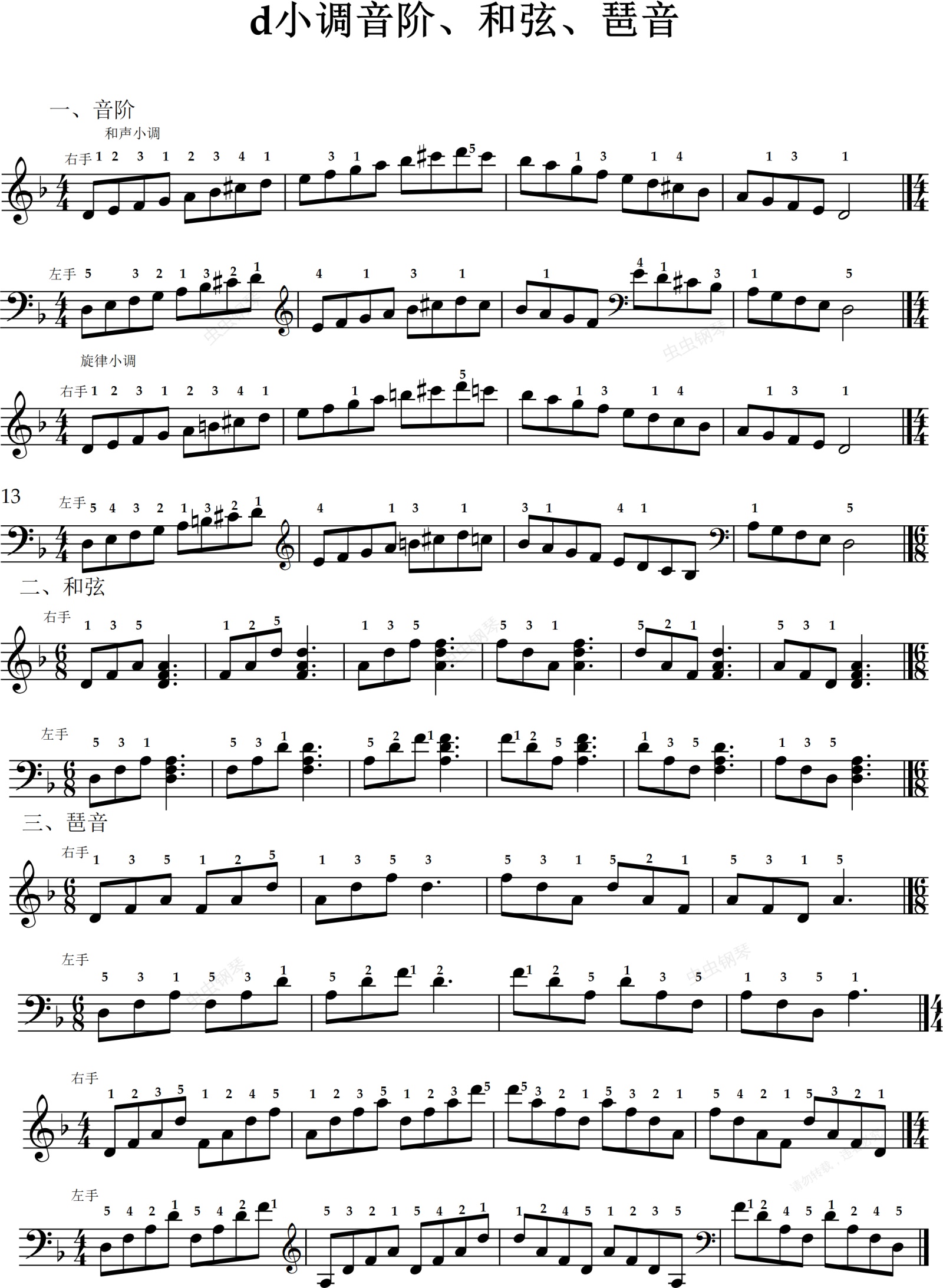 钢琴谱:d小调音阶、和弦、琶音