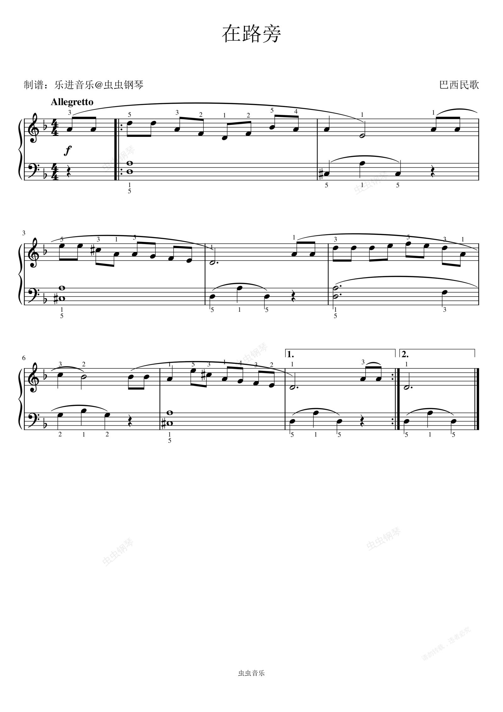钢琴谱:《在路旁》,《弹儿歌学钢琴》教材版