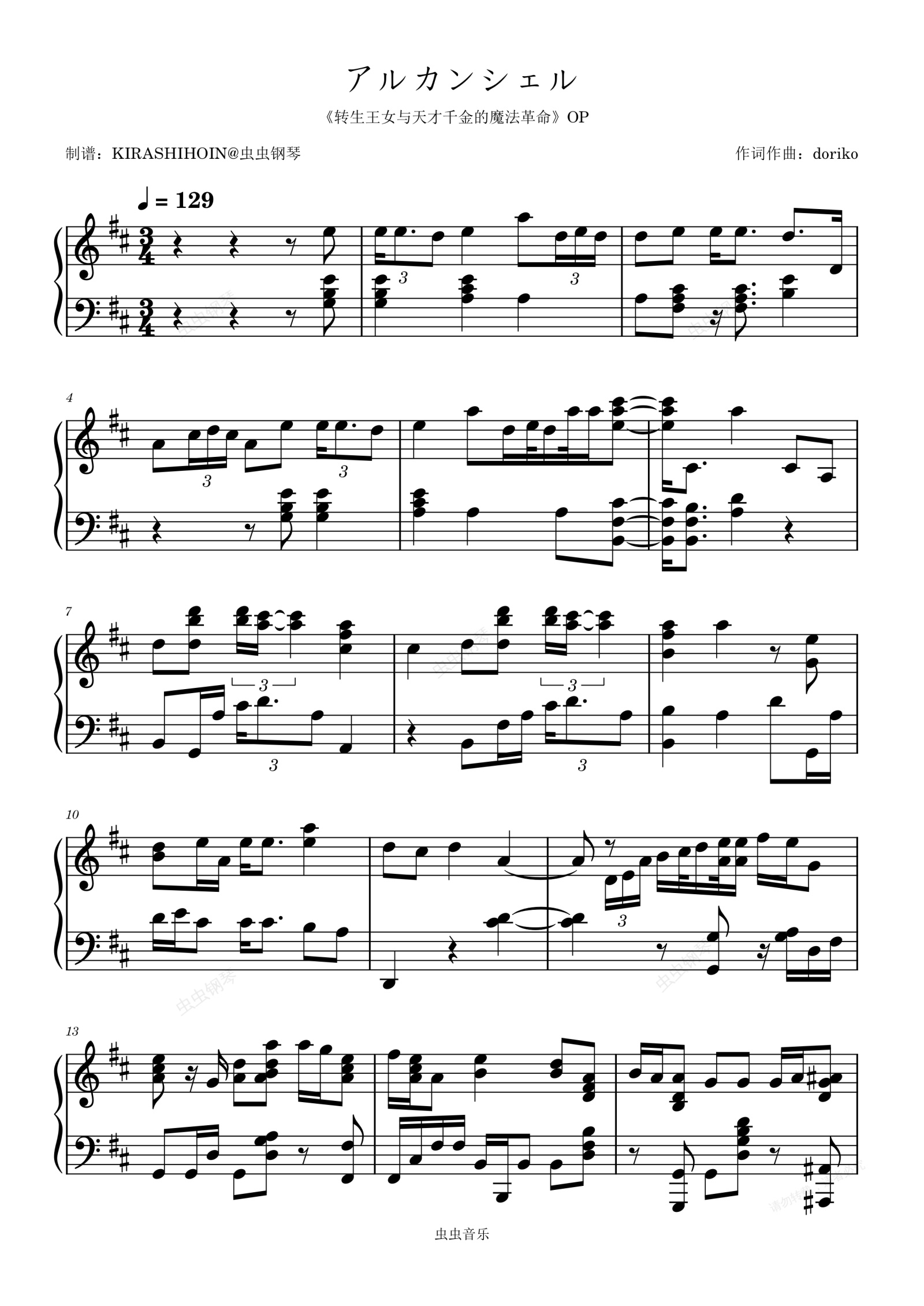 钢琴谱:アルカンシェル(《转生王女与天才千金的魔法革命》OP/片头曲)- 花たん
