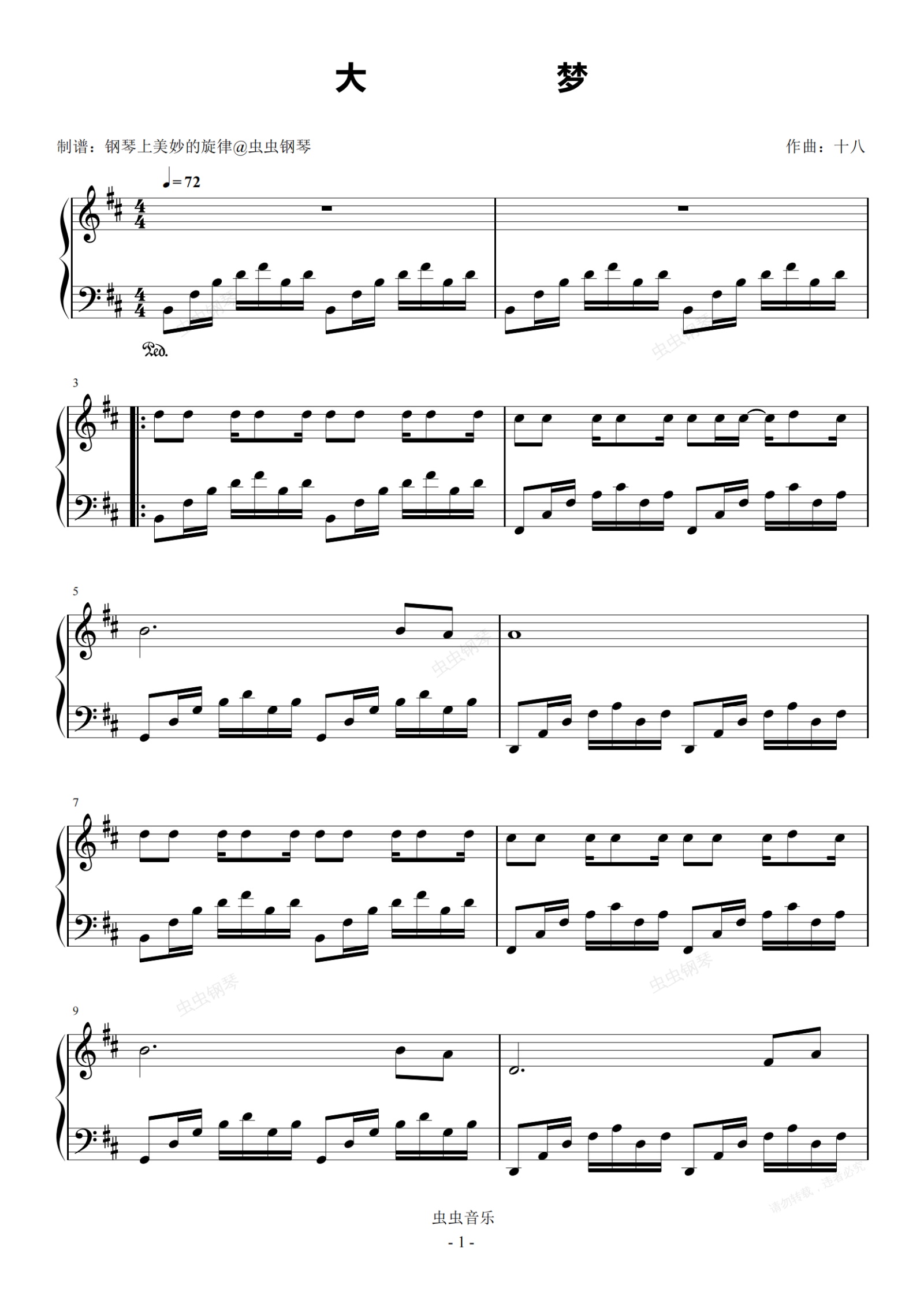 钢琴谱:大梦 原调简易版 瓦依那/任素汐