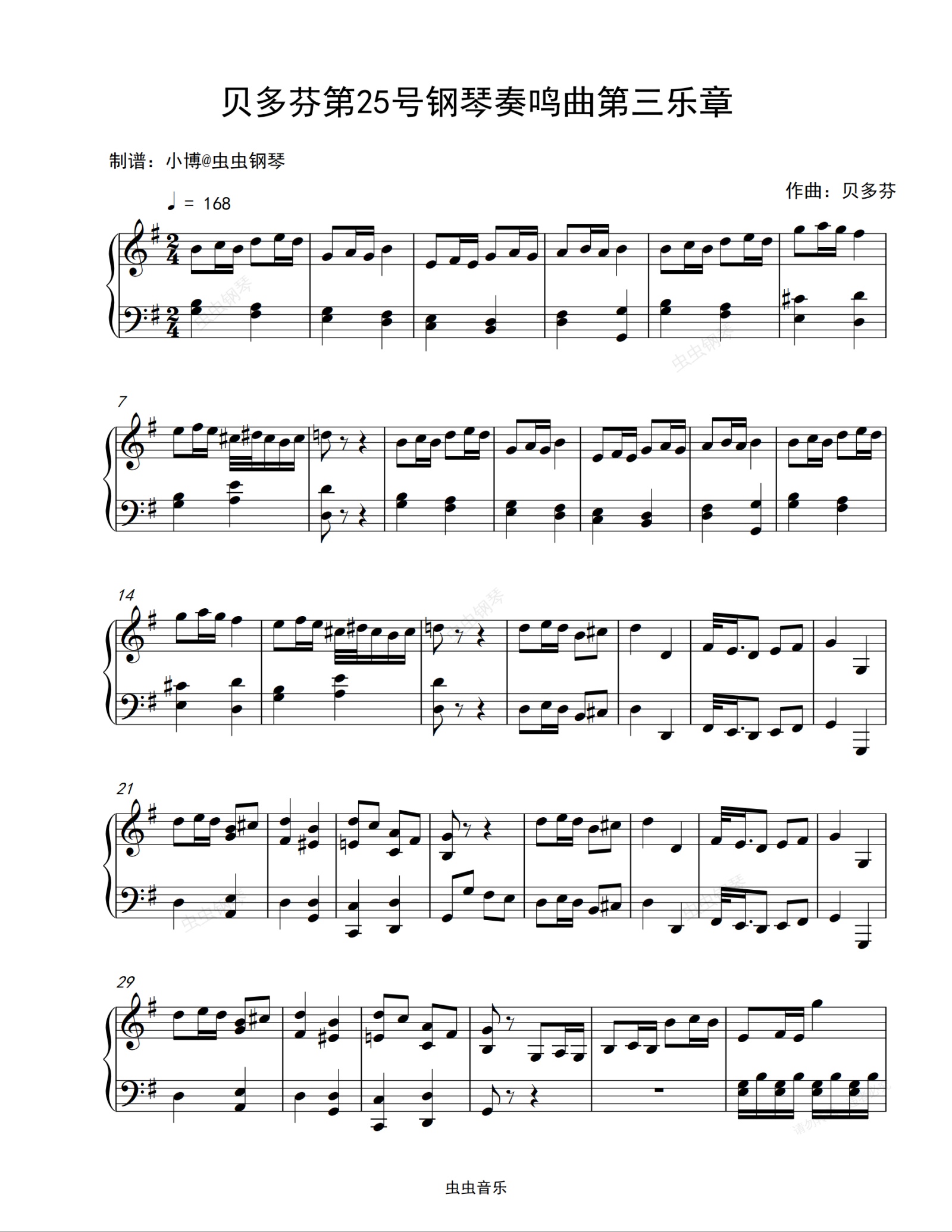 钢琴谱:贝多芬第25号钢琴奏鸣曲第三乐章-贝多芬