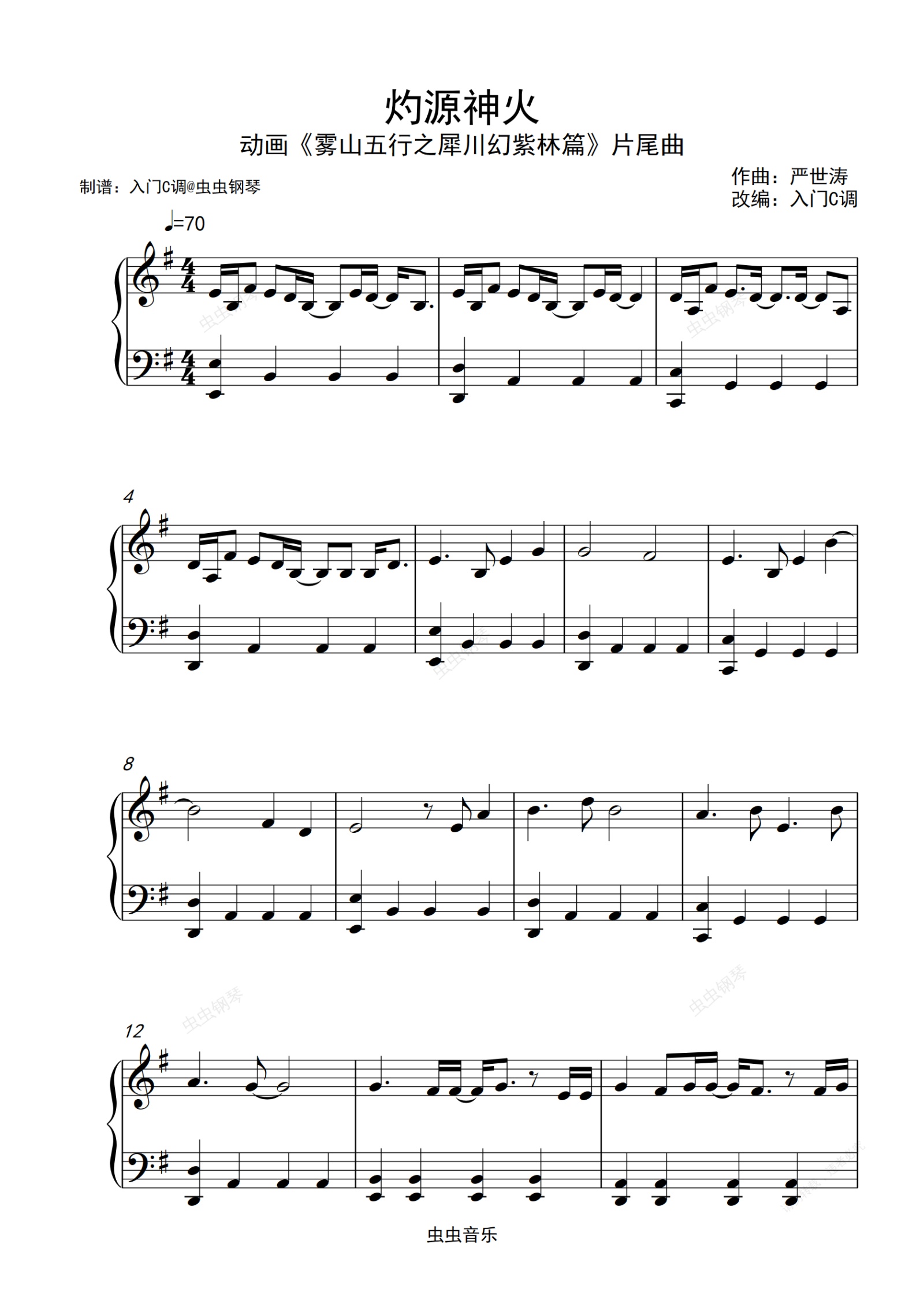 钢琴谱:林魂《灼源神火》(动画《雾山五行之犀川幻紫林篇》片尾曲)G调简单版