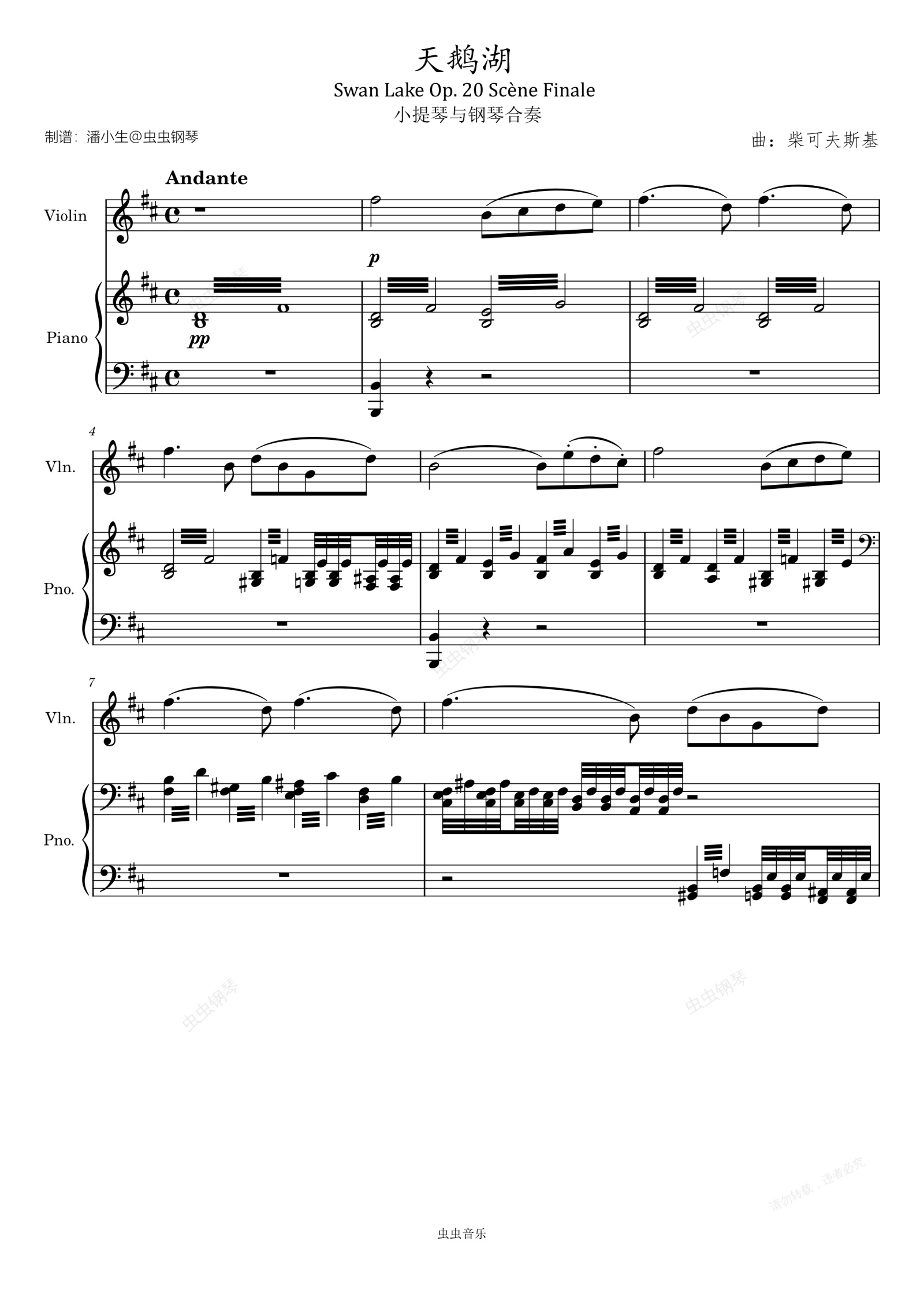 钢琴谱:柴可夫斯基 天鹅湖 Swan Lake Op.20 小提琴与钢琴合奏谱 Scène Finale
