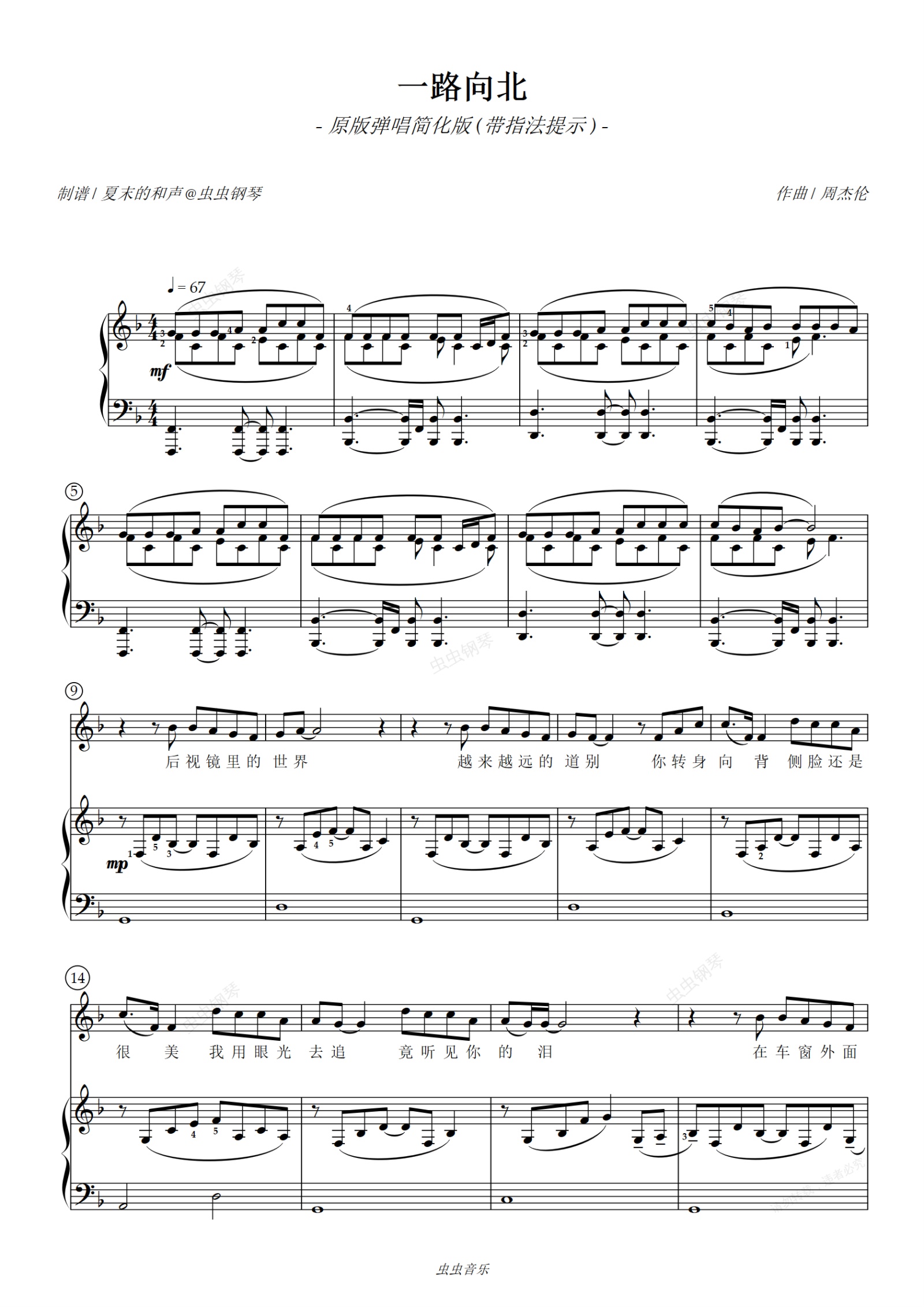 一路向北 - 原版弹唱简化版(带指法) - 周杰伦 - 11月的肖邦