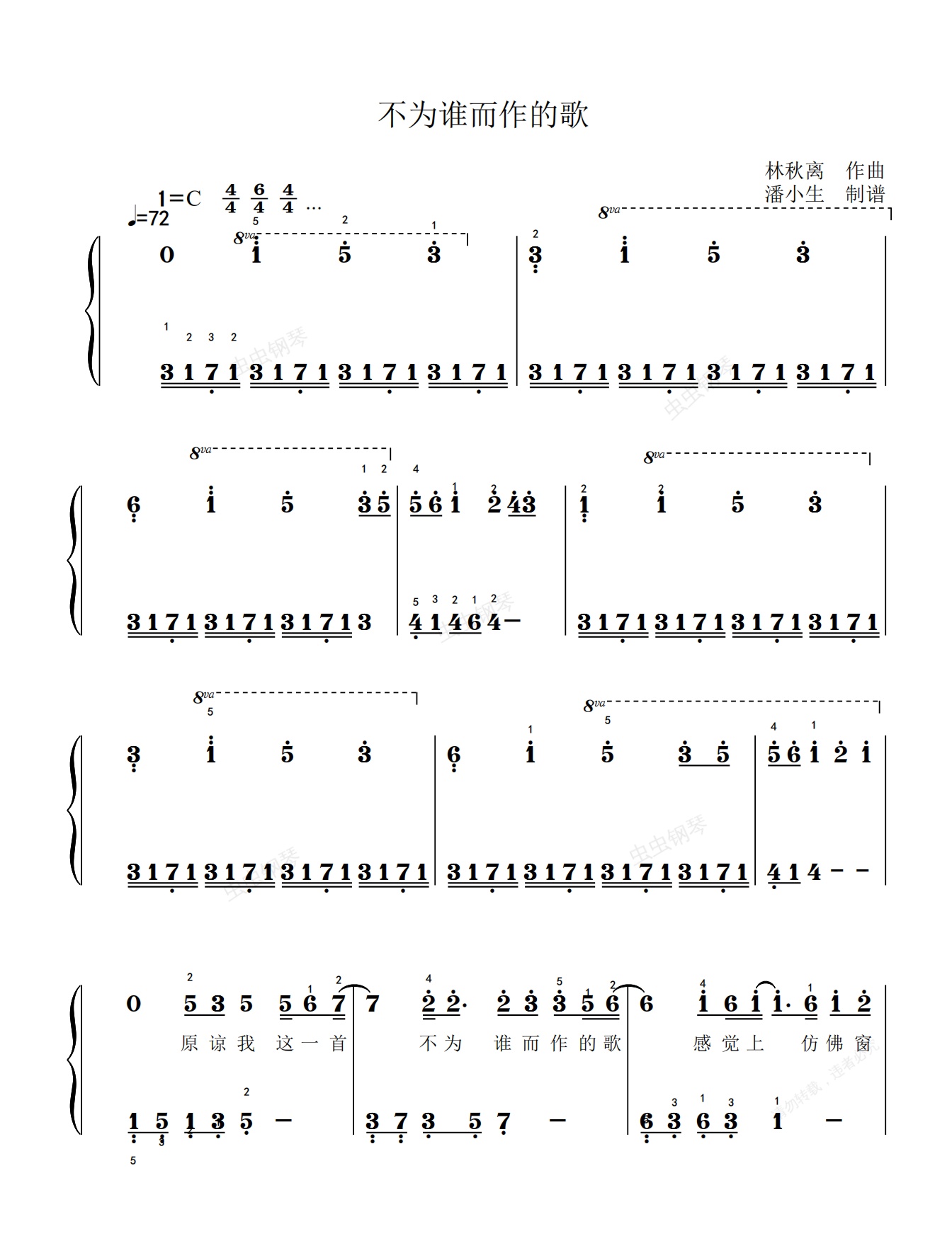 钢琴谱:不为谁而作的歌