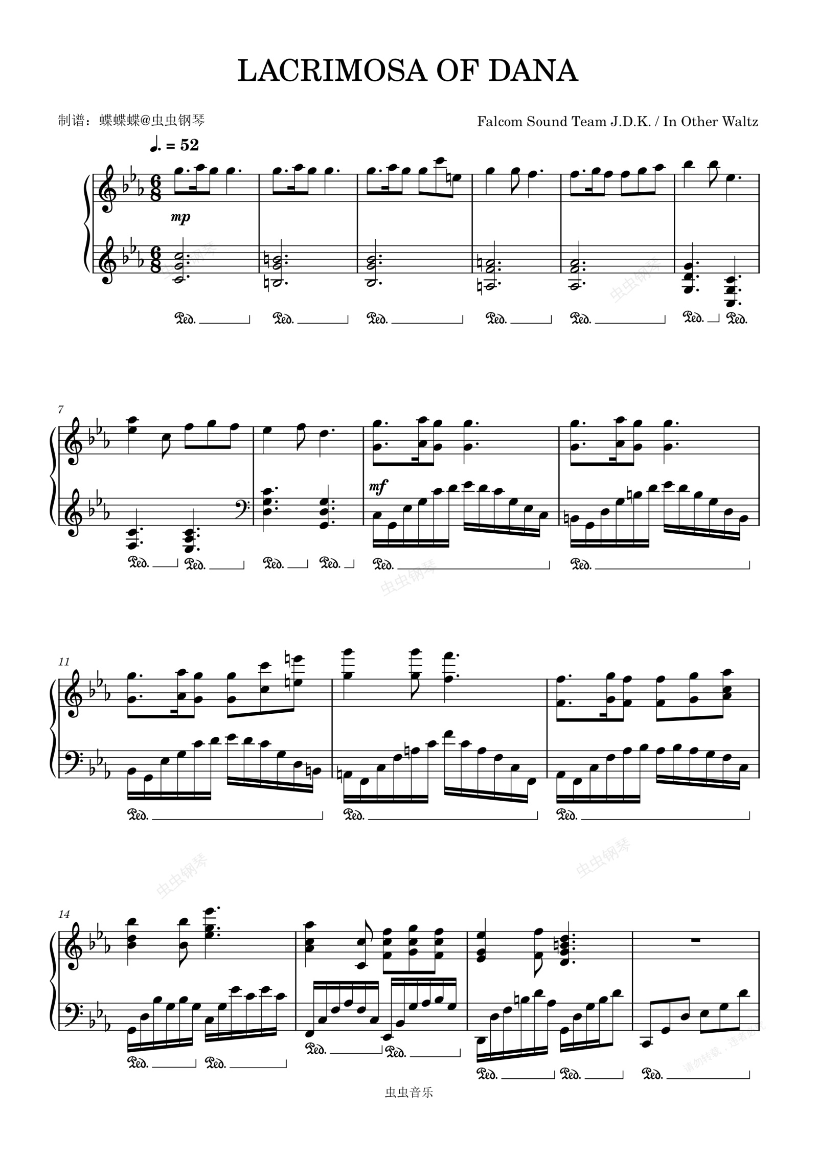 钢琴谱:伊苏8——LACRIMOSA OF DANA