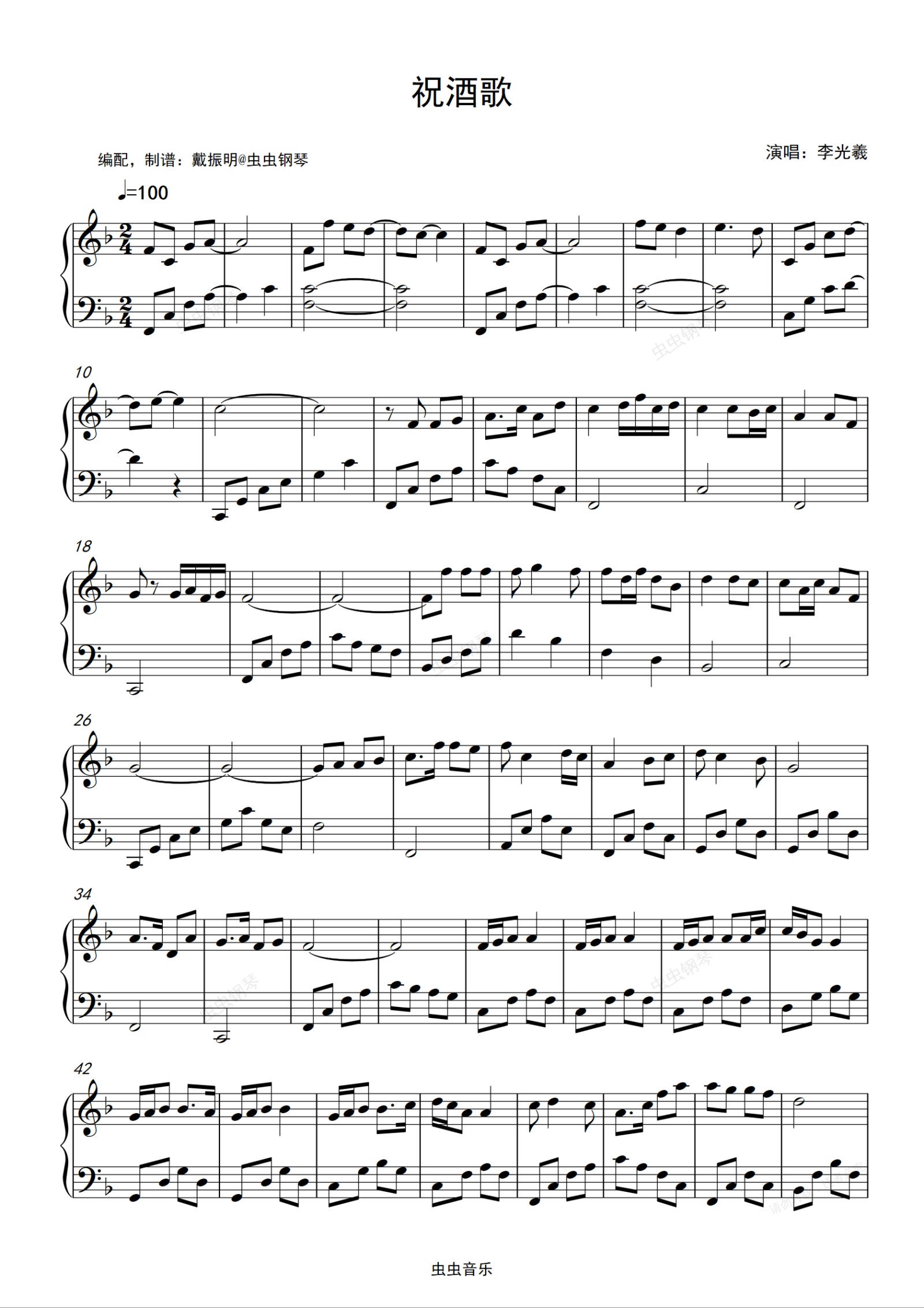 钢琴谱:祝酒歌