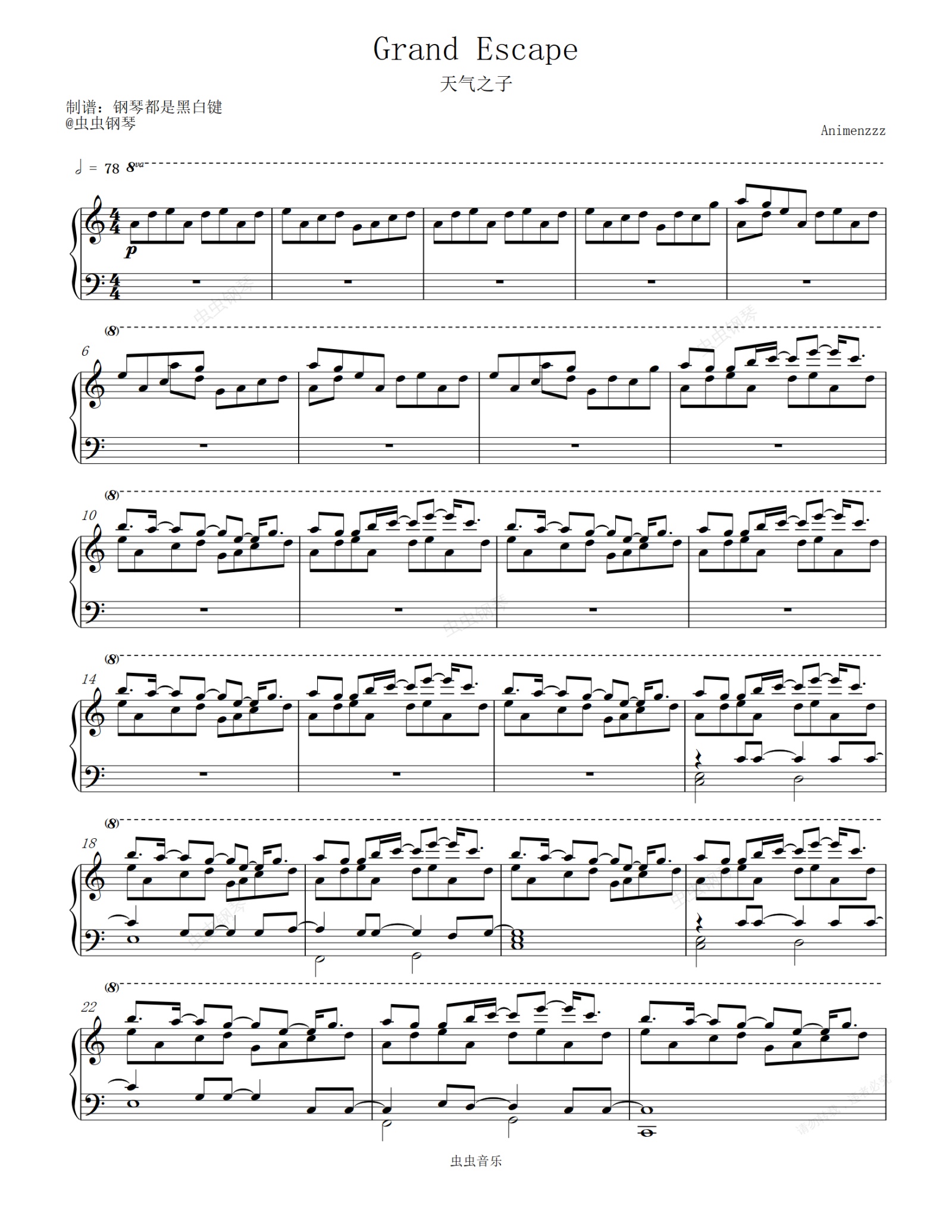 钢琴谱:【Animenz】天气之子 - Grand Escape [C调易弹]