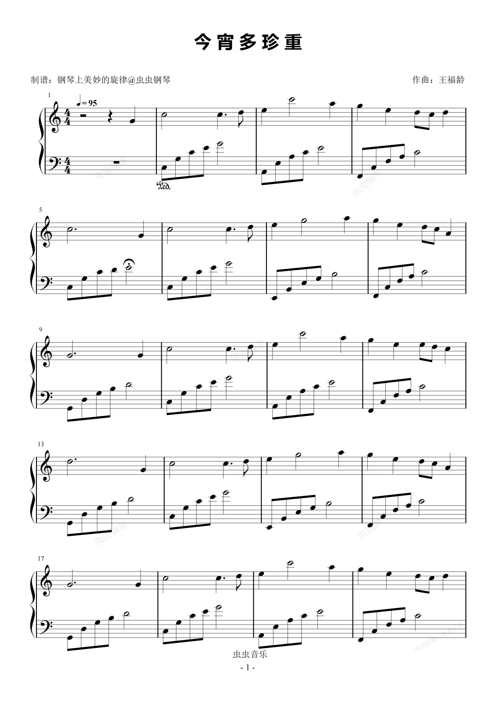钢琴谱:今宵多珍重  C调简易版  陈百强  流行经典