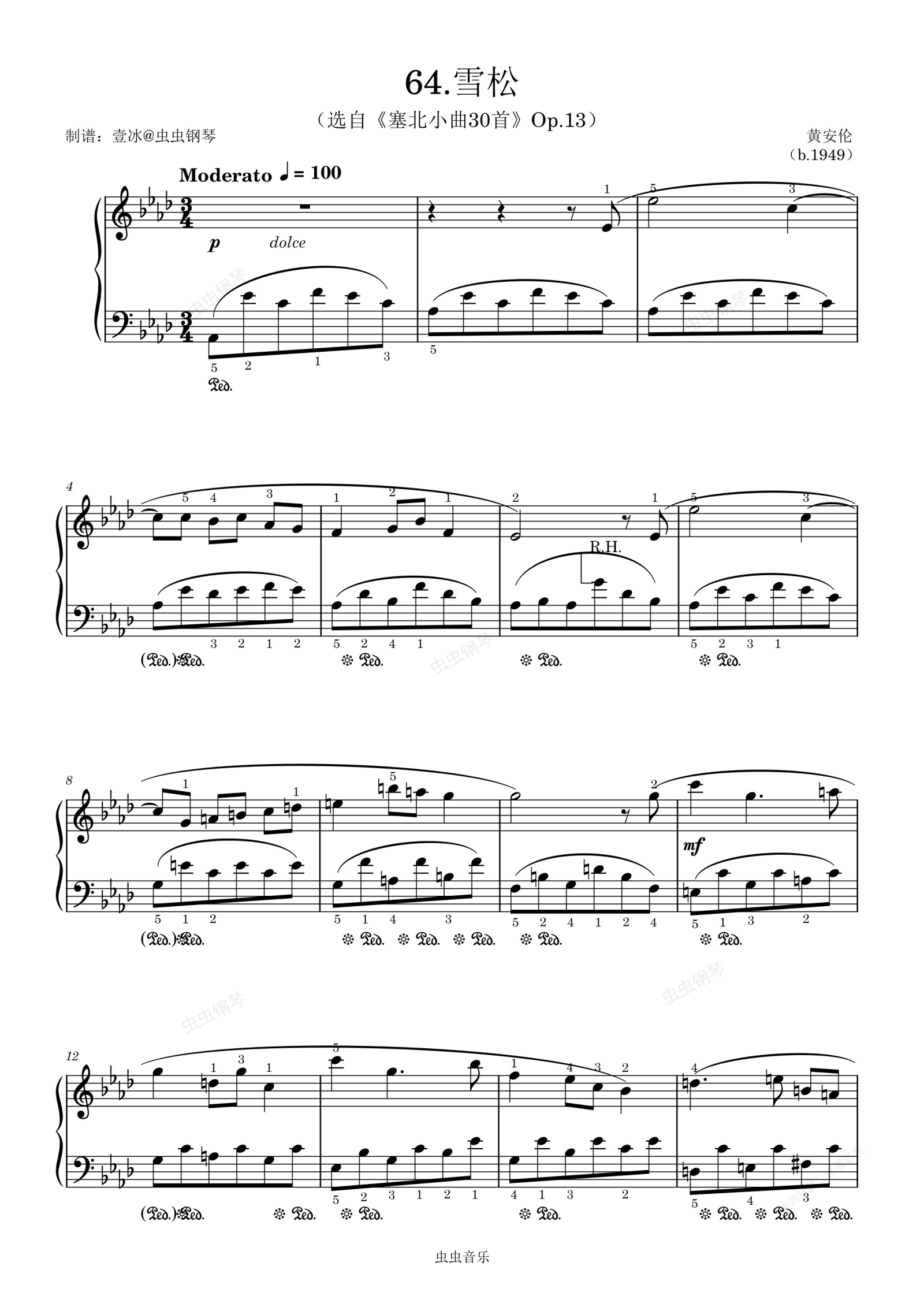 钢琴谱:雪松 (选自《塞北小曲30首》Op.13) 黄安伦