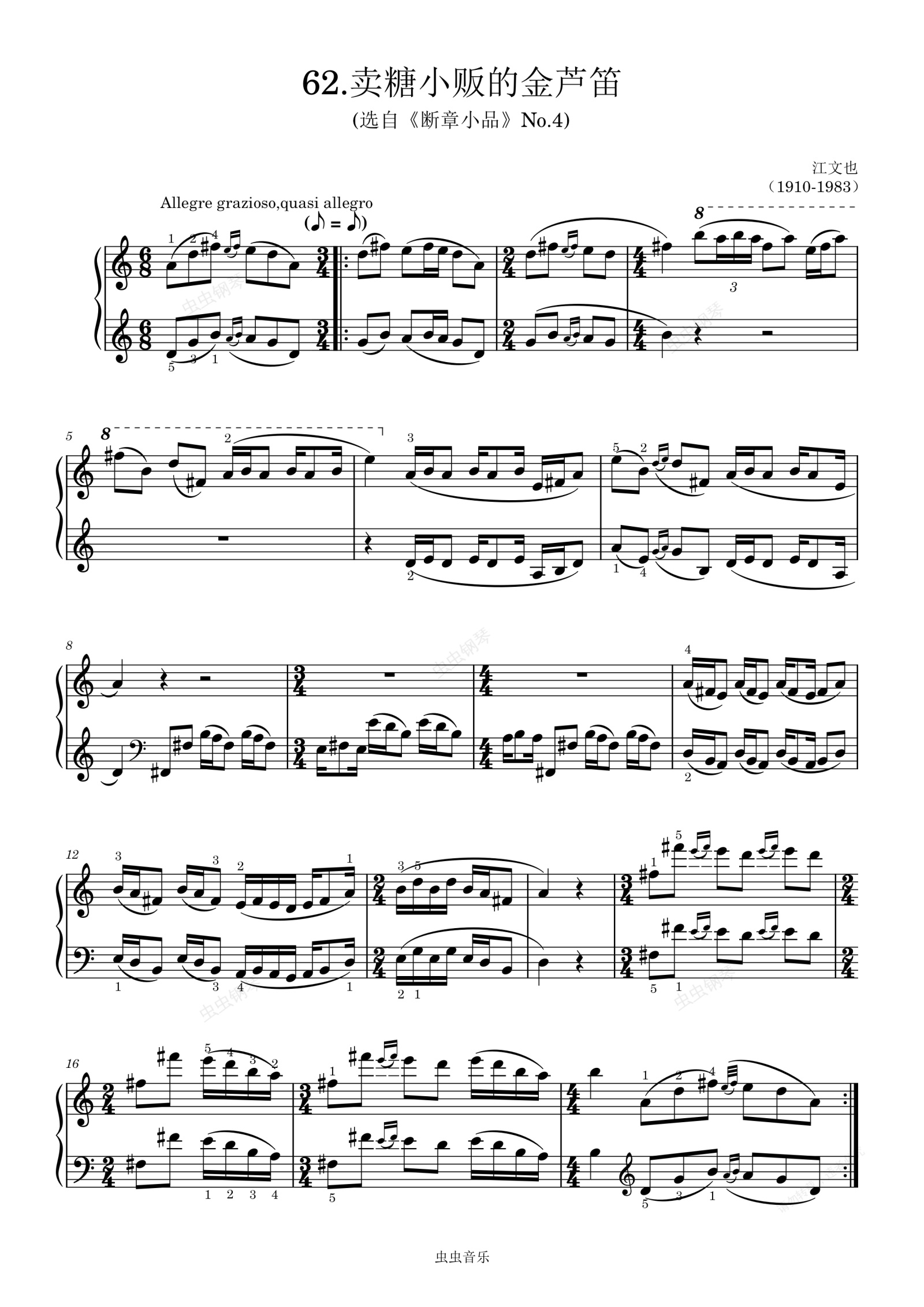 钢琴谱:卖糖小贩的金芦笛//(选自《断章小品》No.4) 江文也