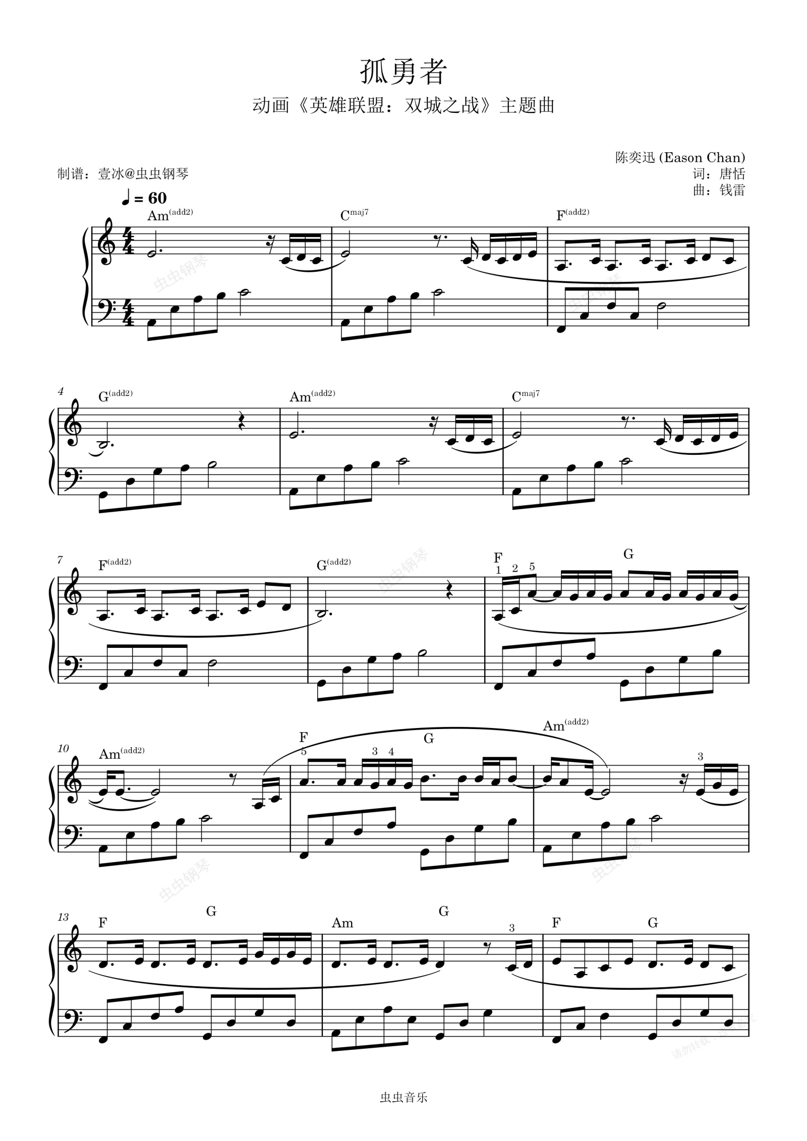 钢琴谱:孤勇者 (《英雄联盟:双城之战》动画剧集中文主题曲) 陈奕迅