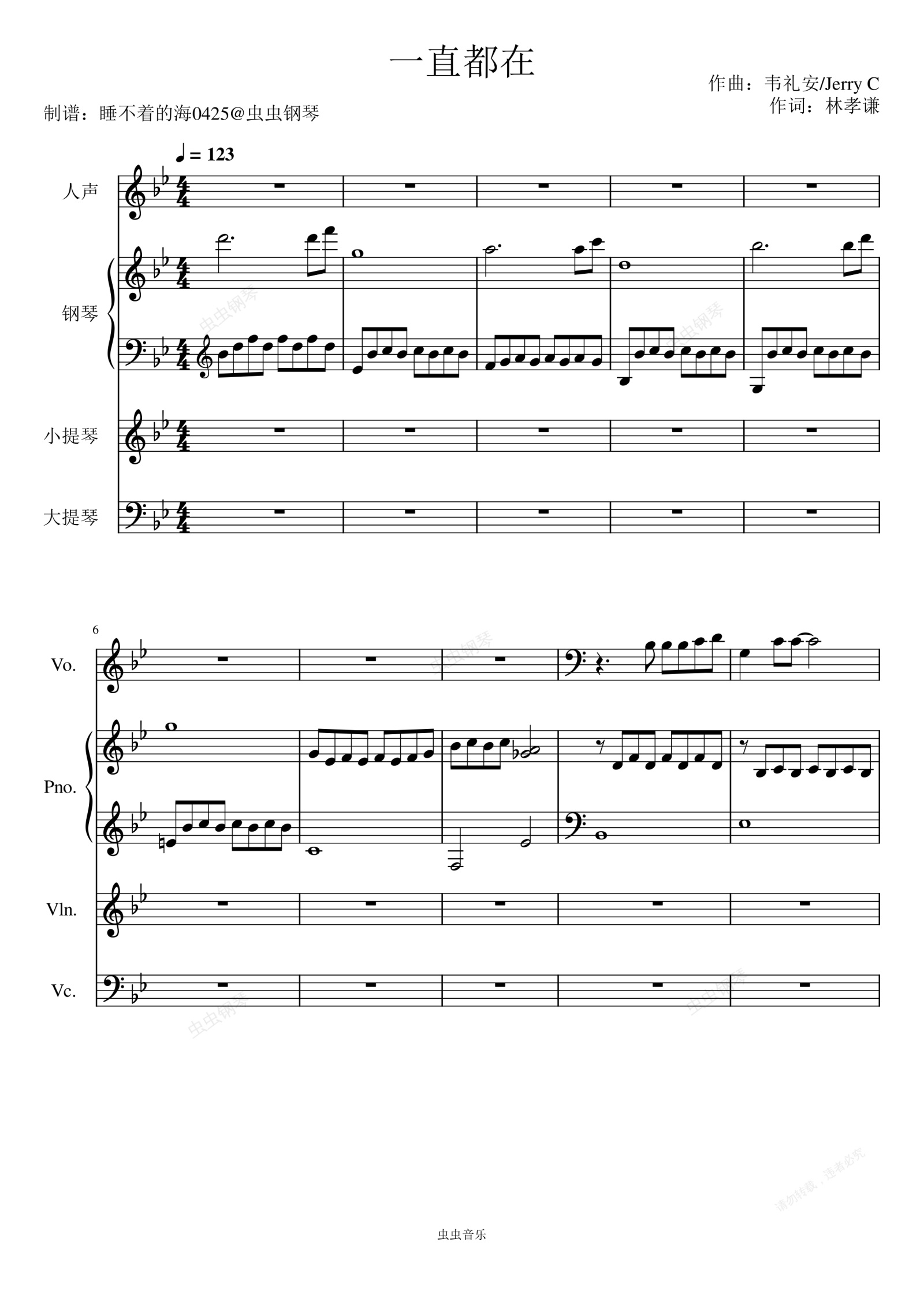 钢琴谱:一直都在 电影《一个麻吉四个鬼》主题曲