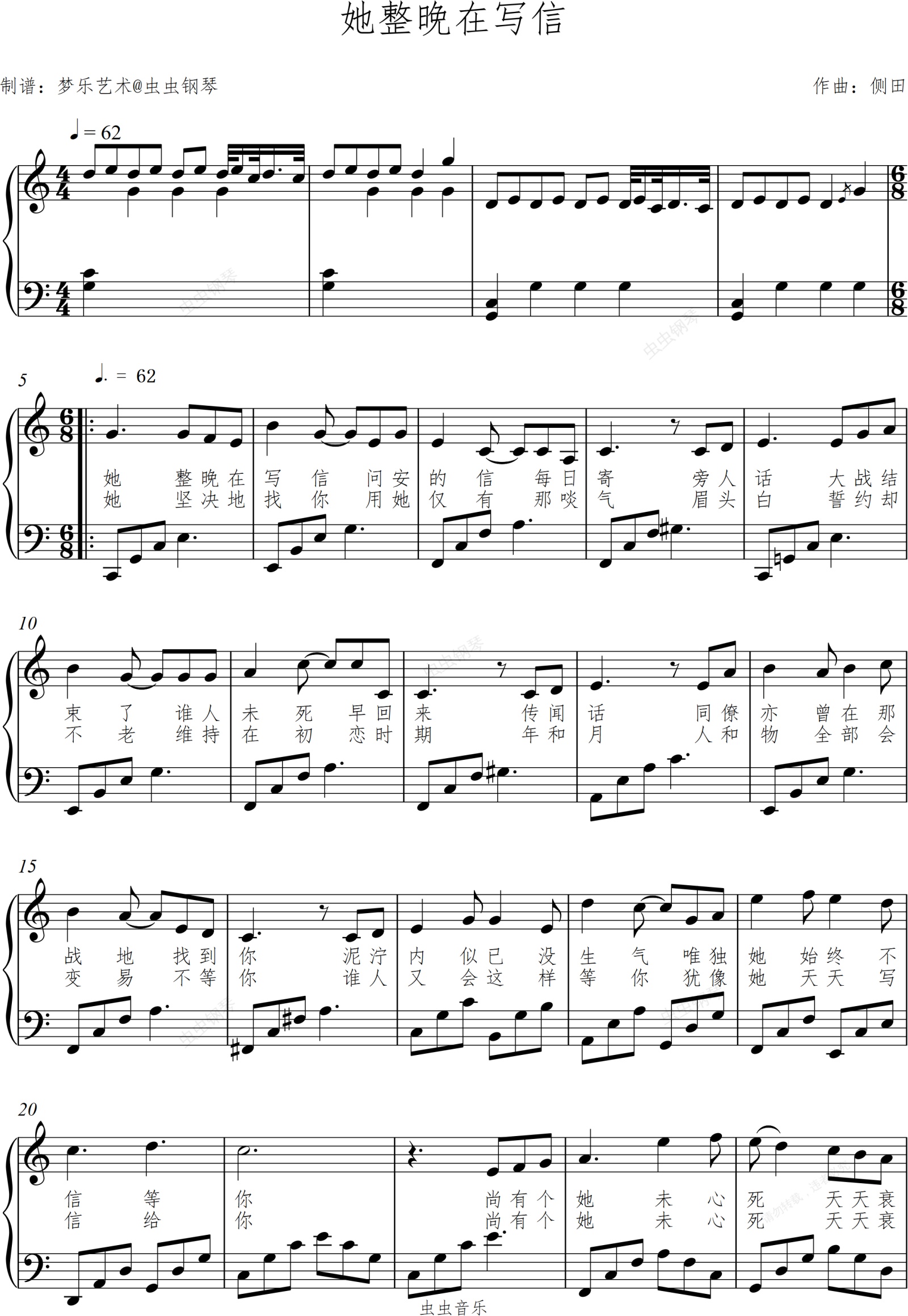 钢琴谱:她整晚在写信 (C调/附歌词)卫兰
