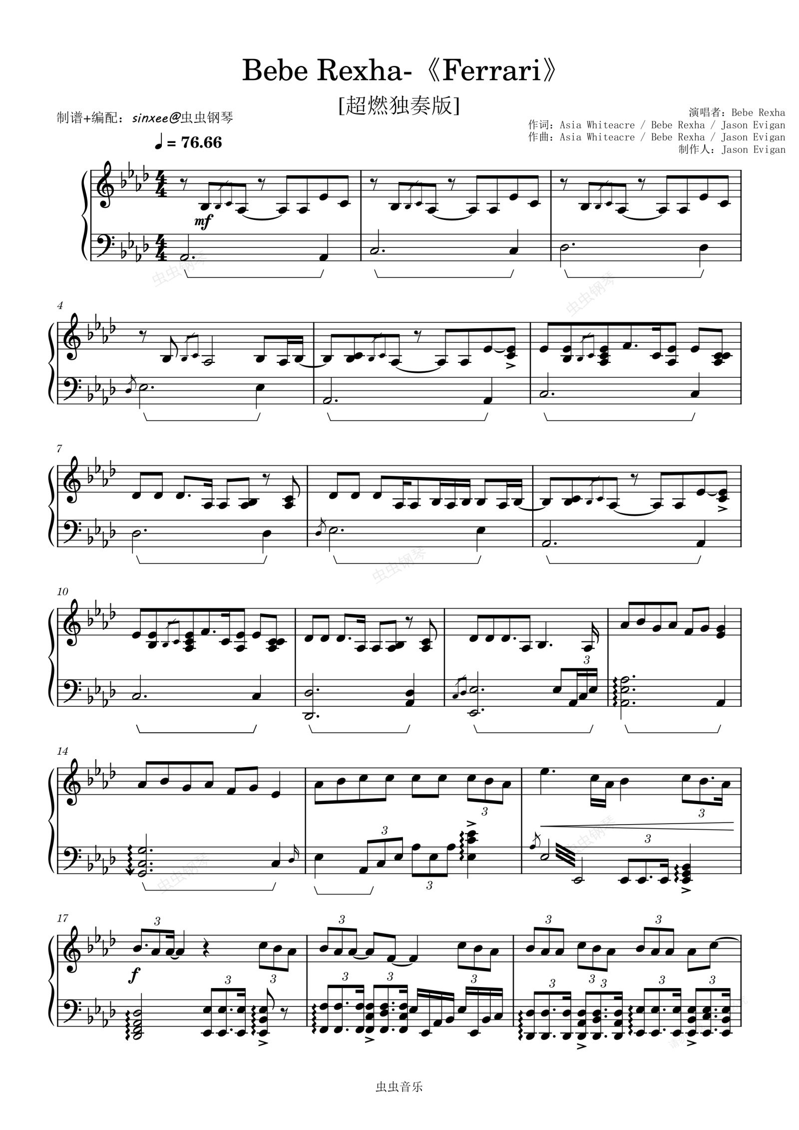 钢琴谱:Bebe Rexha-《Ferrari》超燃钢琴独奏版