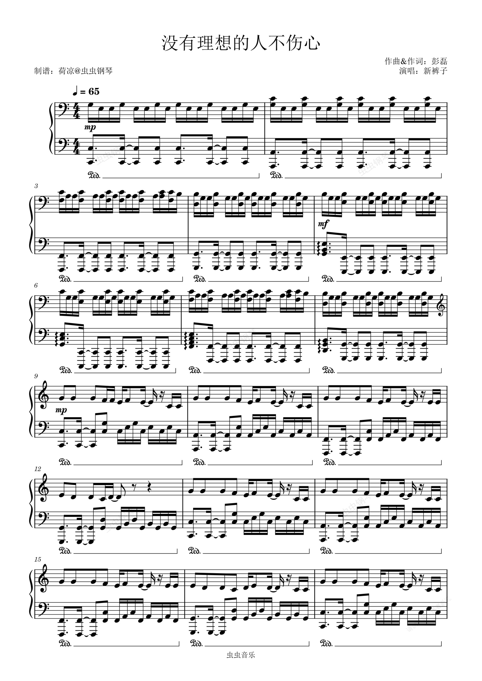钢琴谱:没有理想的人不伤心(缝纫机乐队 插曲)