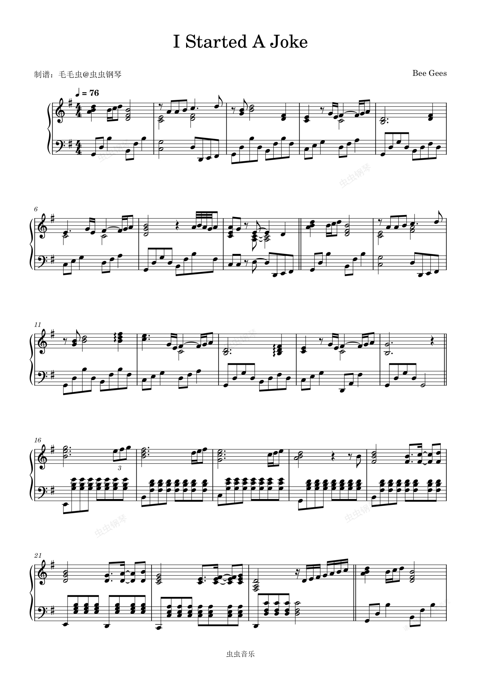 钢琴谱:I Started A Joke - Bee Gees