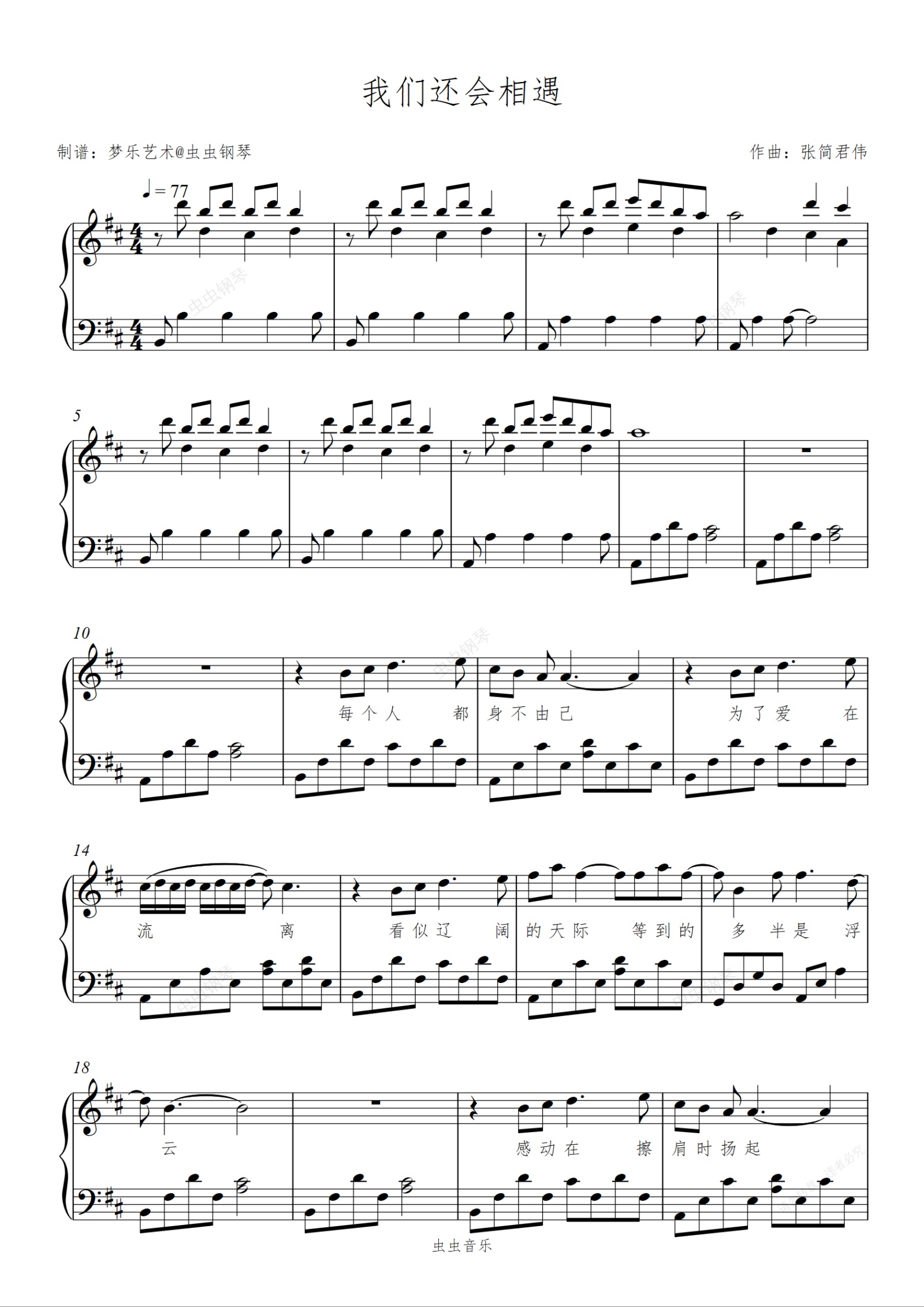 钢琴谱:我们还会相遇 原调D/高度还原/附歌词
