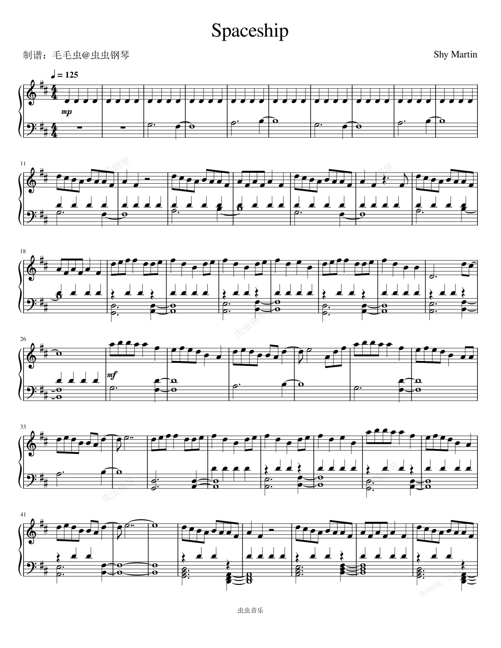 钢琴谱:Spaceship - Shy Martin