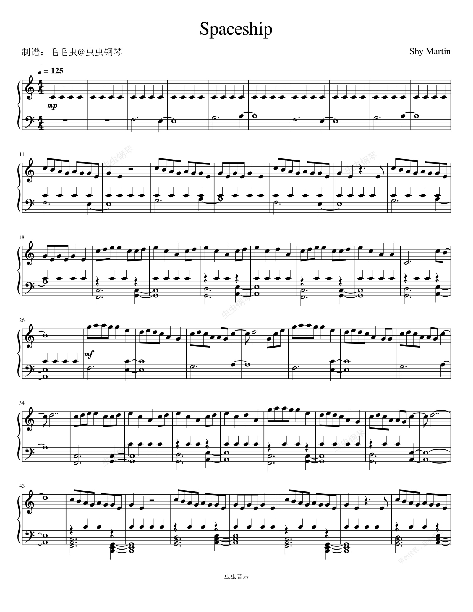 钢琴谱:Spaceship - Shy Martin