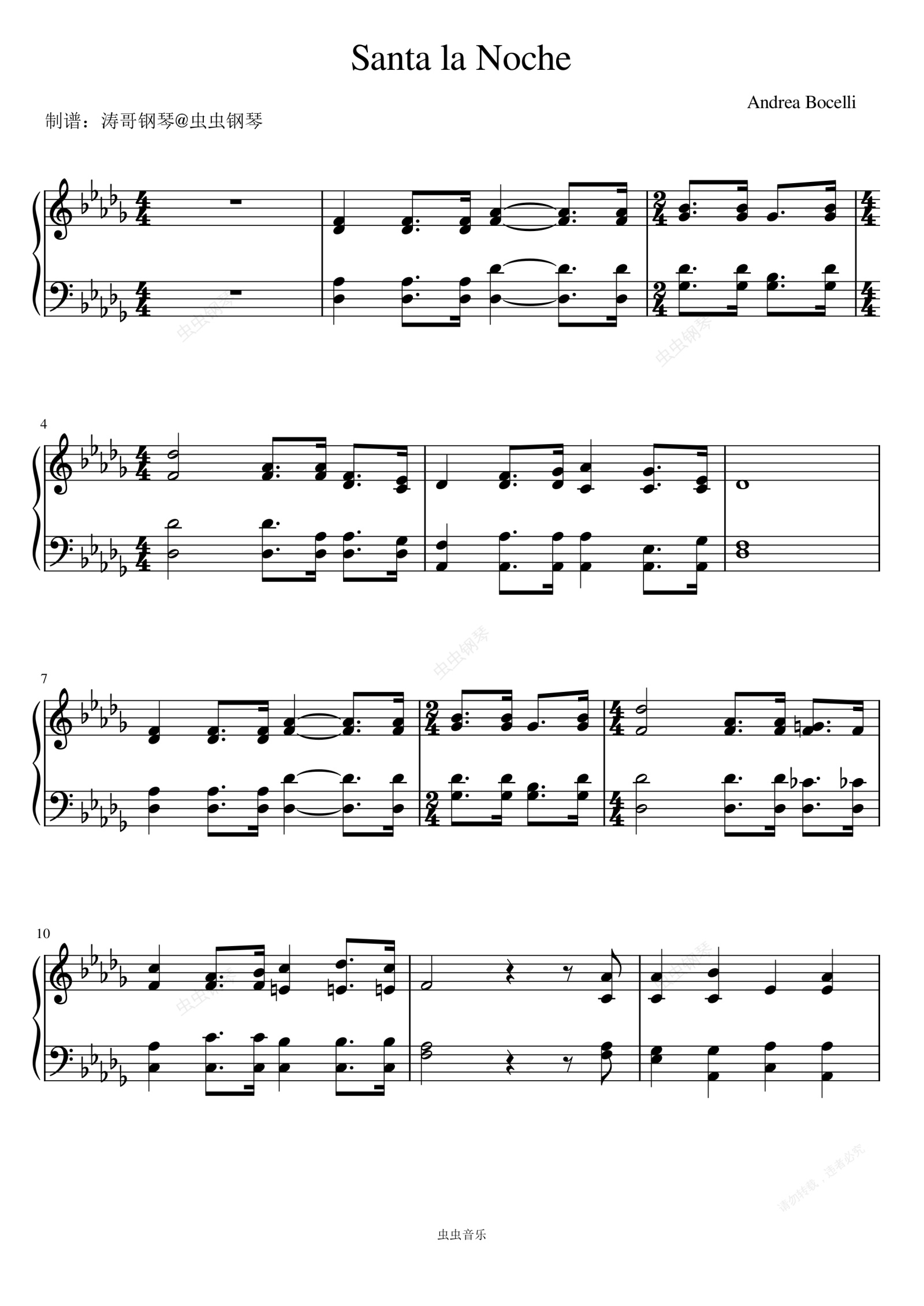 钢琴谱:Santa La Noche - Andrea Bocelli (安德烈·波切利)