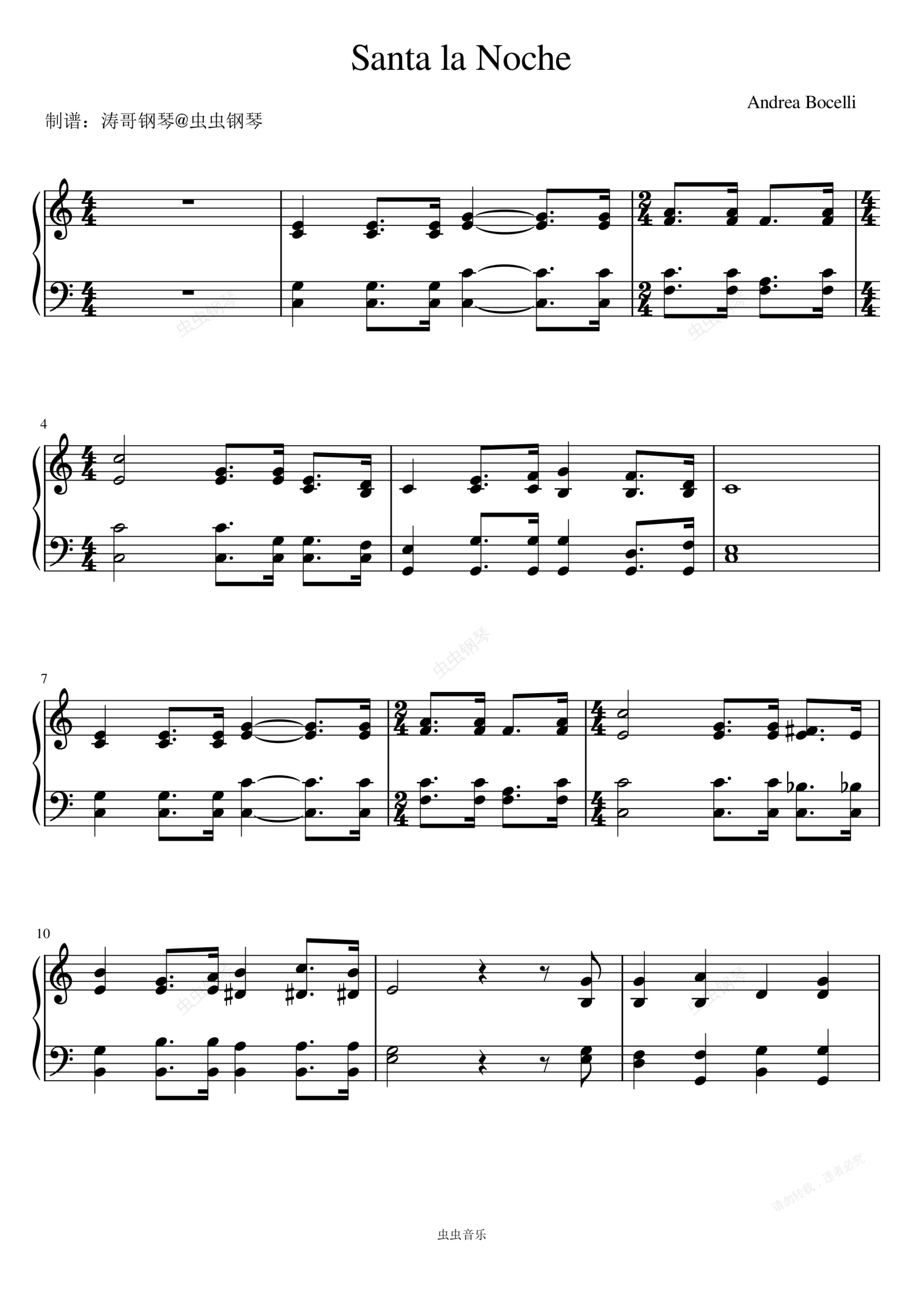 钢琴谱:Santa La Noche - Andrea Bocelli (安德烈·波切利)