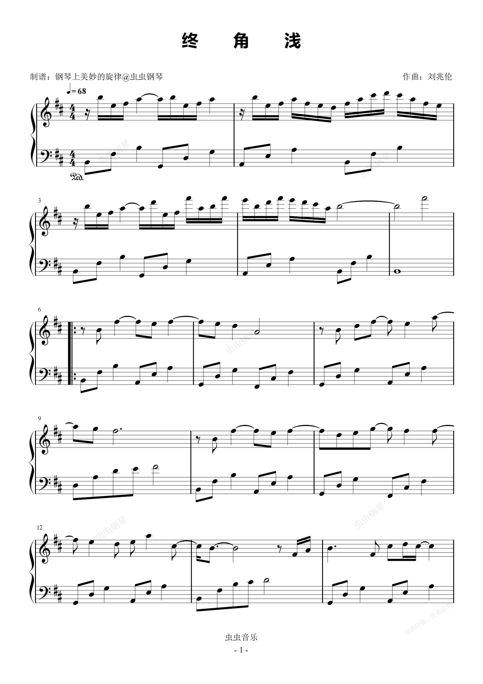 钢琴谱:终角浅 原调简易版 周传雄