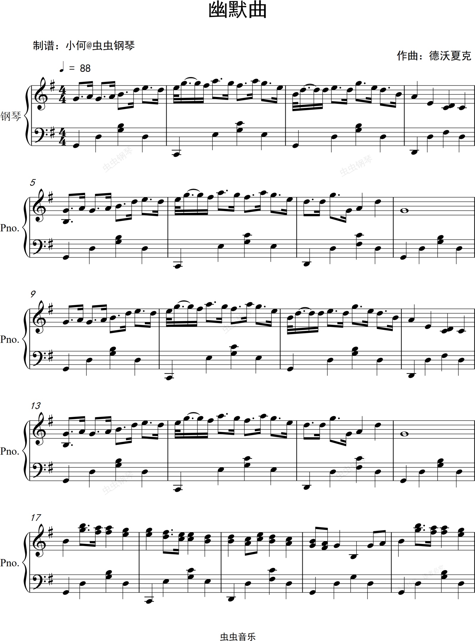 钢琴谱:幽默曲-德沃夏克